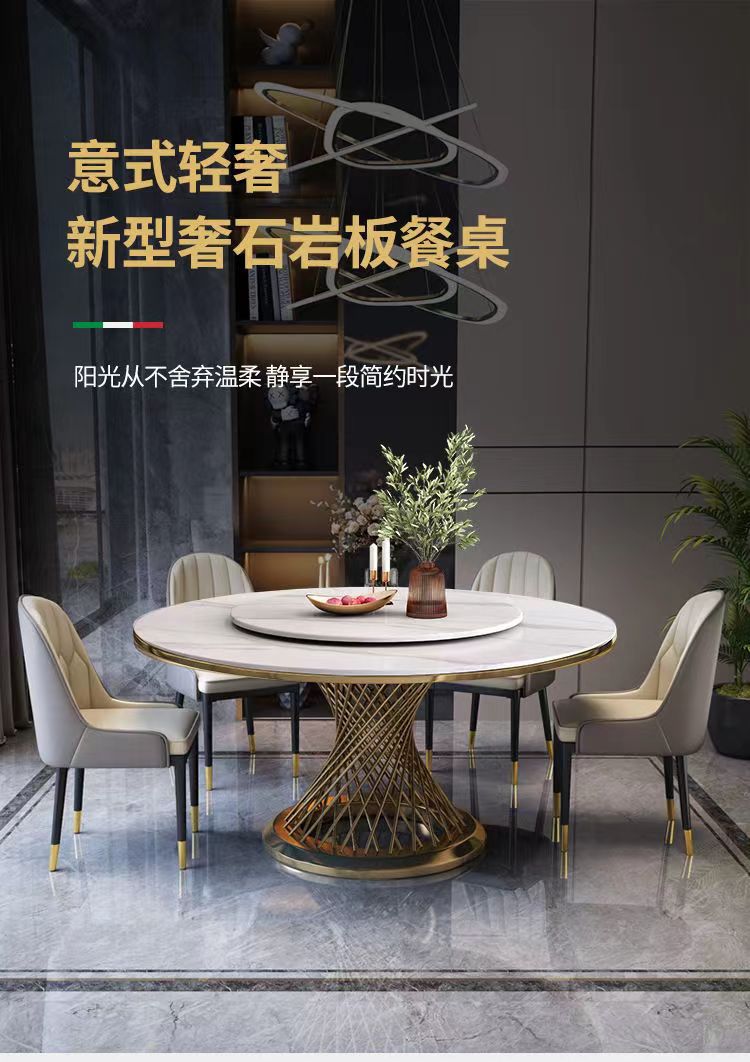 Bàn ăn tại nhà bằng đá cẩm thạch bàn tròn 6 người 8 người gia đình bàn ăn đá phiến phòng khách nhà hàng khách sạn bàn ăn eo nhỏ – Bàn ăn nhập khẩu cao cấp