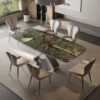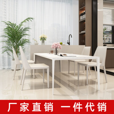 Bàn ăn tấm đá Delifeng nhà căn hộ nhỏ Ý hiện đại tối giản hợp kim nhôm hình chữ nhật ánh sáng trắng bàn ăn sang trọng