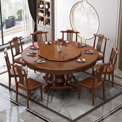 Bàn ăn thương mại kiểu Trung Quốc mới bàn ăn gỗ nguyên khối kết hợp nhà khách sạn căn hộ nhỏ Bàn ăn tròn lớn 10 người