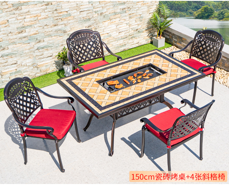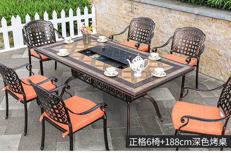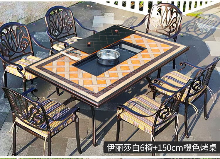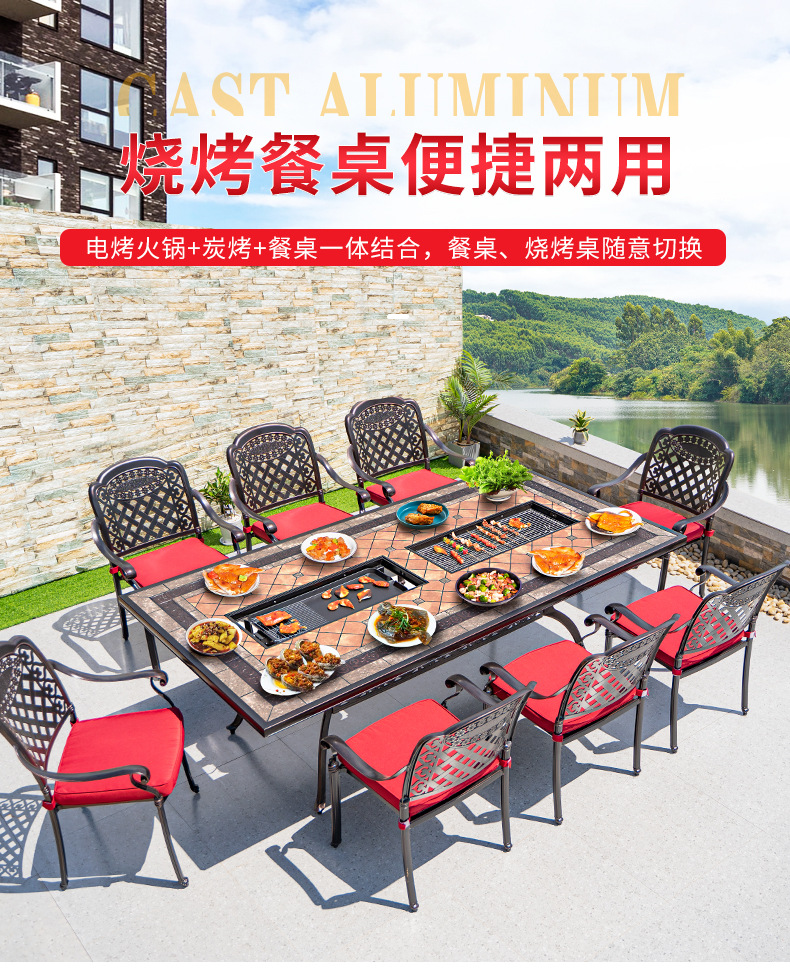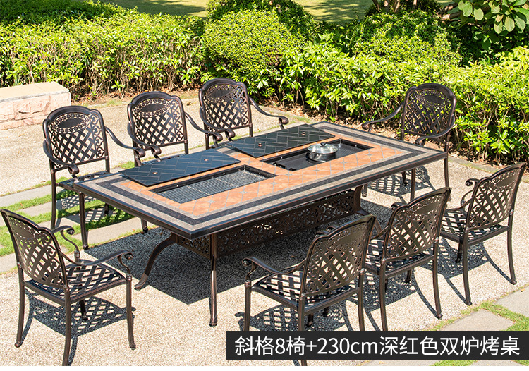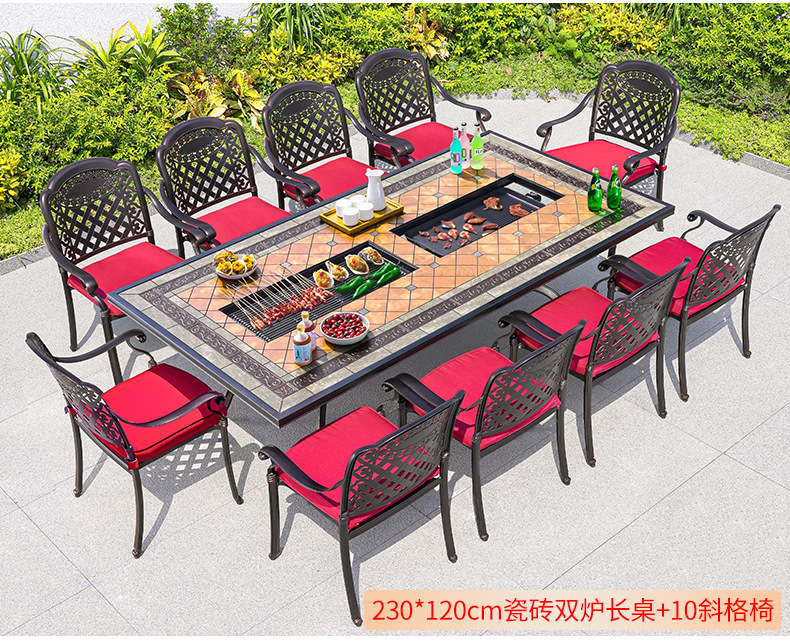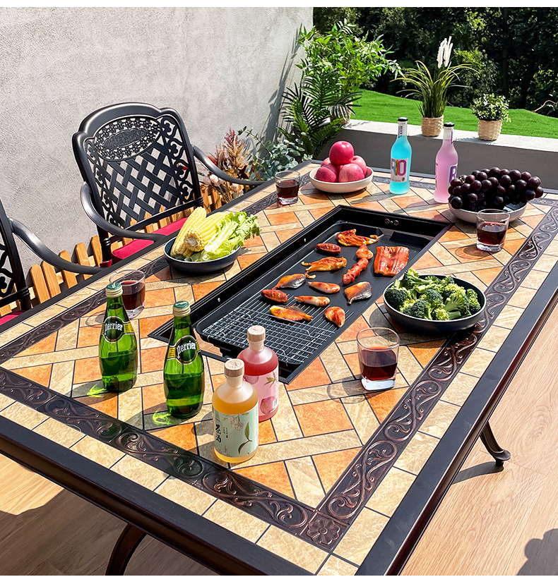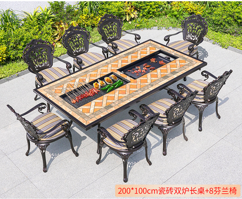 Bàn ăn tiệc nướng nhôm đúc ngoài trời sân thượng sân thượng biệt thự vườn sắt rèn giải trí ngoài trời tại nhà xích đu nướng điện bàn ghế