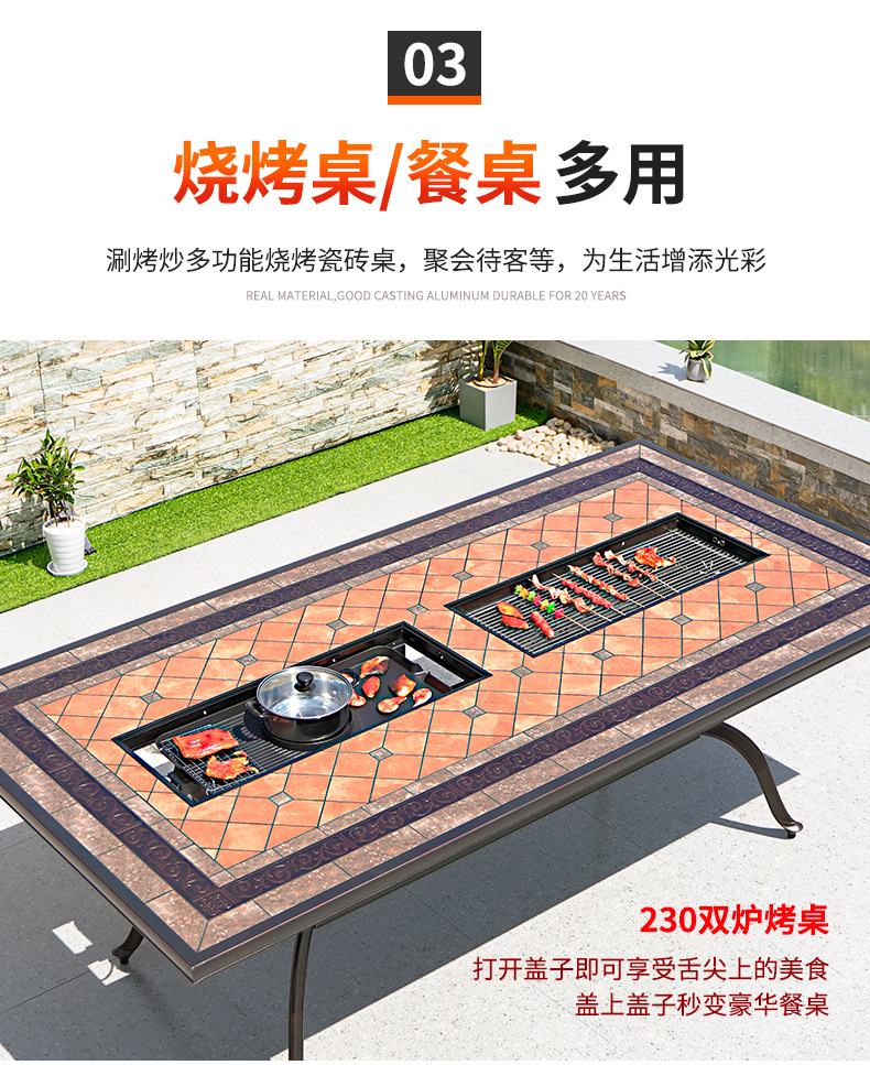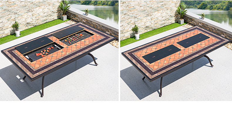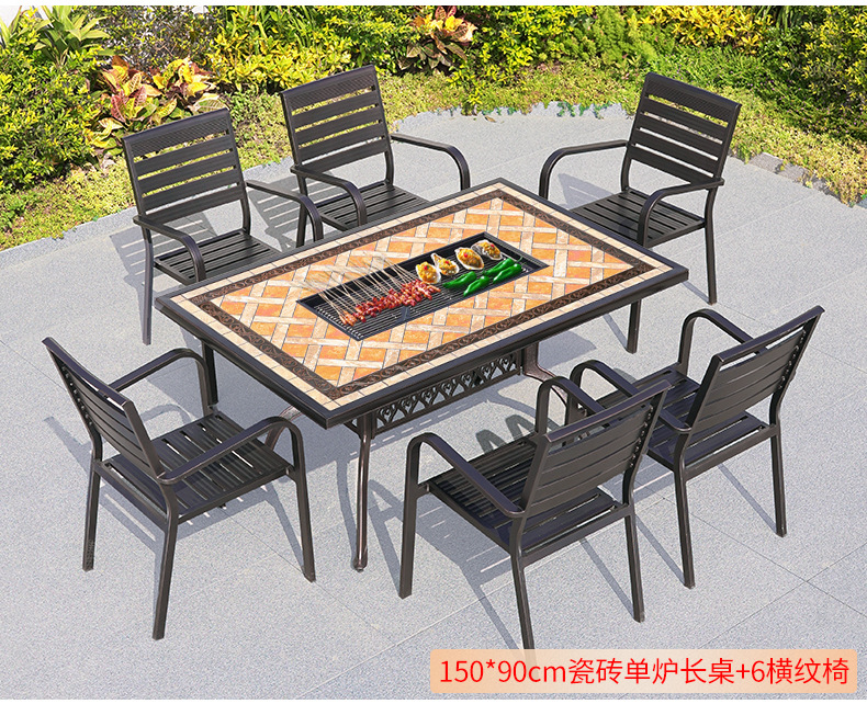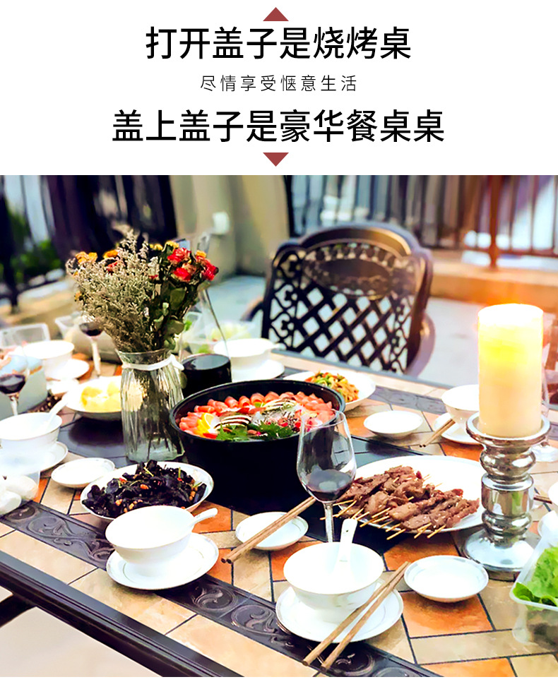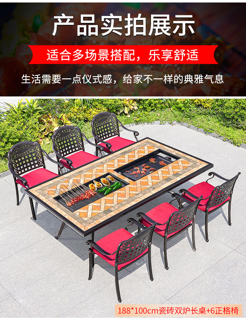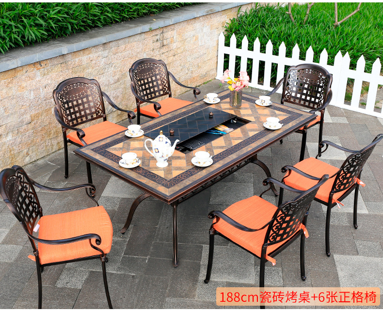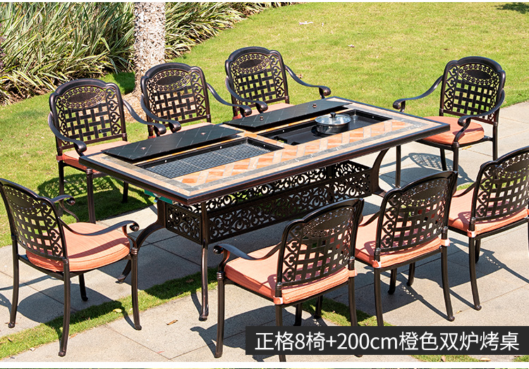 Bàn ăn tiệc nướng nhôm đúc ngoài trời sân thượng sân thượng biệt thự vườn sắt rèn giải trí ngoài trời tại nhà xích đu nướng điện bàn ghế