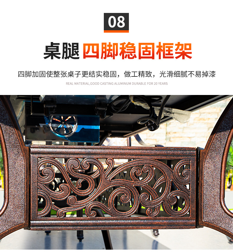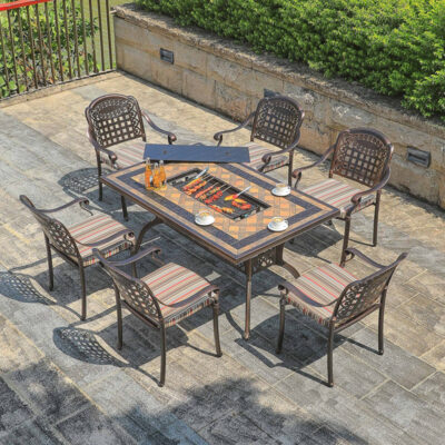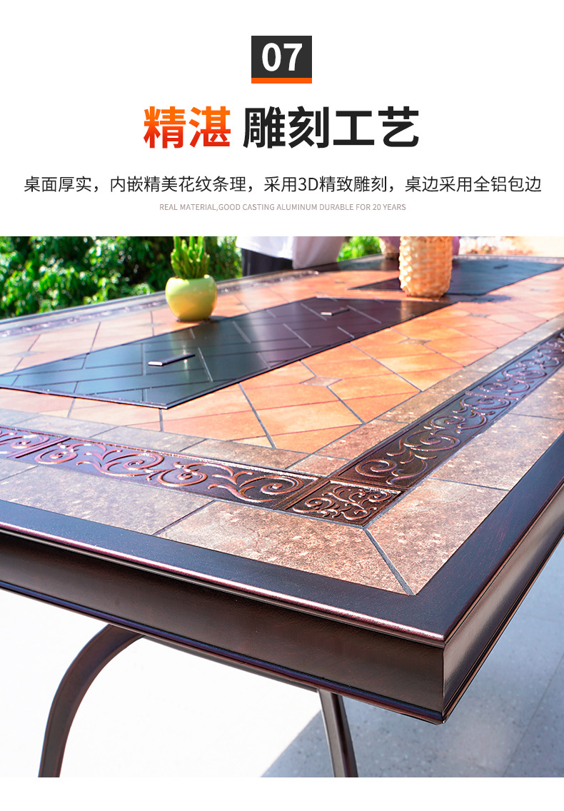 Bàn ăn tiệc nướng nhôm đúc ngoài trời sân thượng sân thượng biệt thự vườn sắt rèn giải trí ngoài trời tại nhà xích đu nướng điện bàn ghế được thiết kế để tạo điểm nhấn cho khu vực sân vườn, ban công hoặc không gian ngoài trời.