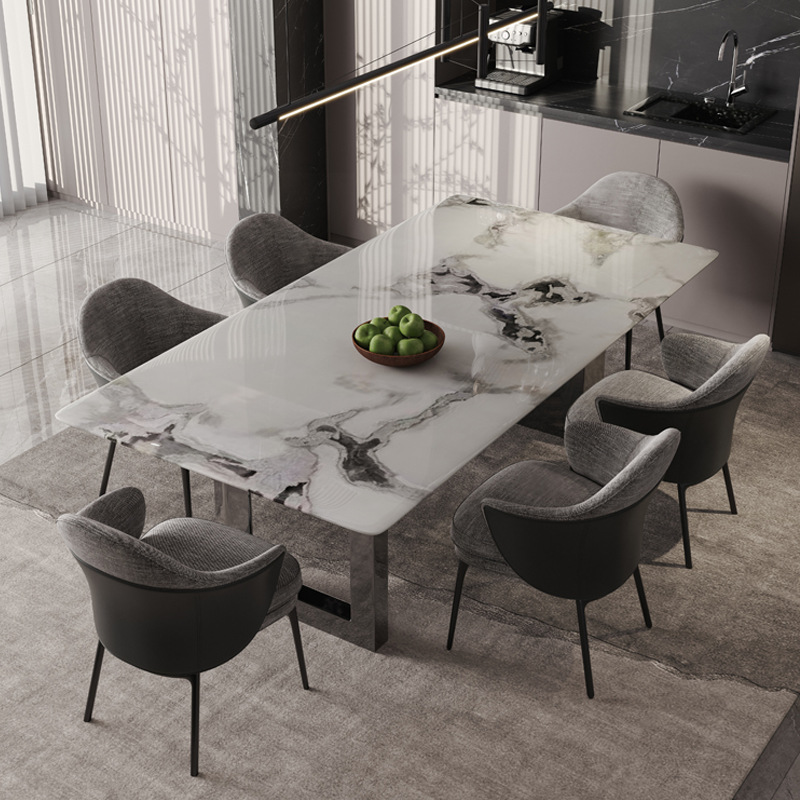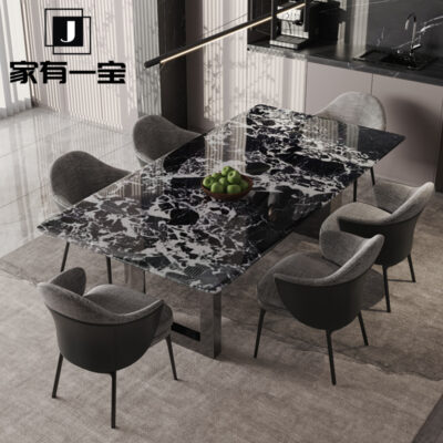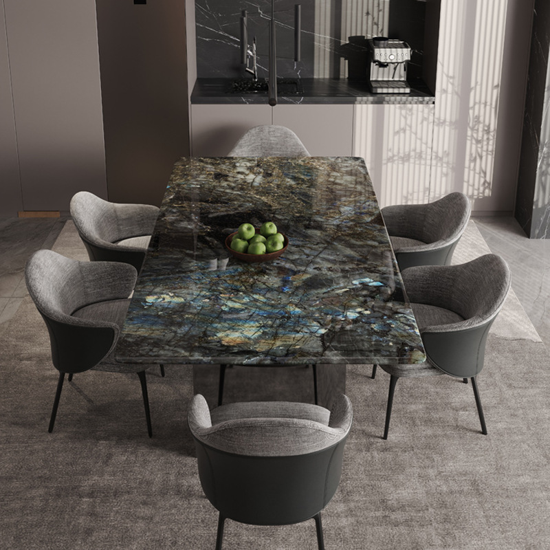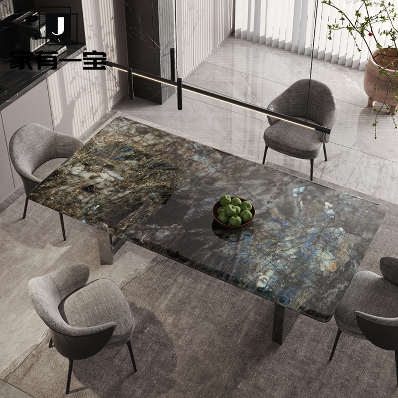 Bàn ăn titan màu xanh ngọc lục bảo sang trọng đá cẩm thạch tự nhiên Ý thiết kế tối giản phong cách biệt thự lớn bàn ăn phẳng lớn