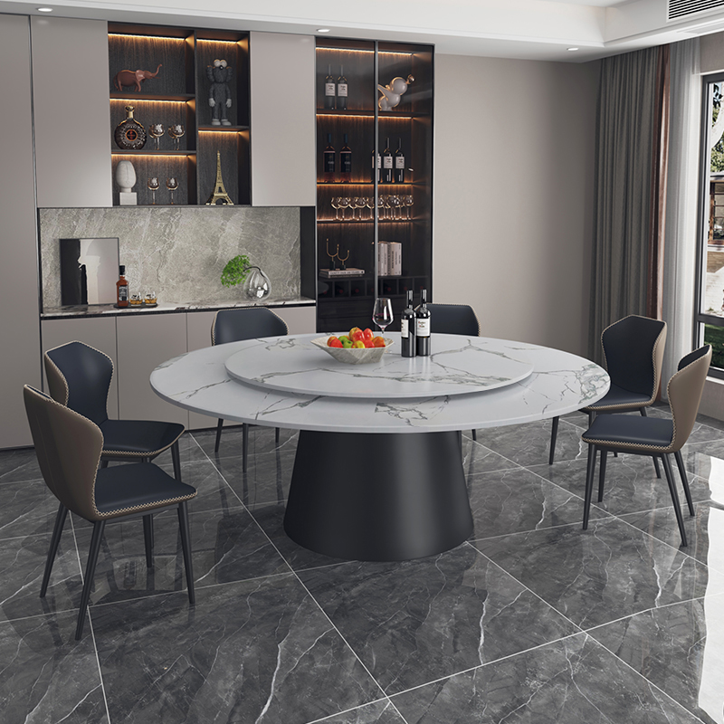 Bàn ăn tròn bằng đá cẩm thạch nhập khẩu. là sản phẩm nổi bật trong dòng bàn ăn nhập khẩu, thiết kế hiện đại và sang trọng, phù hợp với nhiều không gian nội thất cao cấp.
