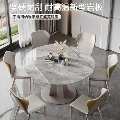 Bàn ăn tròn bằng đá phiến nhập khẩu. là sản phẩm nổi bật trong dòng bàn ăn nhập khẩu, thiết kế hiện đại và sang trọng, phù hợp với nhiều không gian nội thất cao cấp.