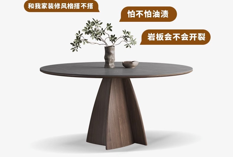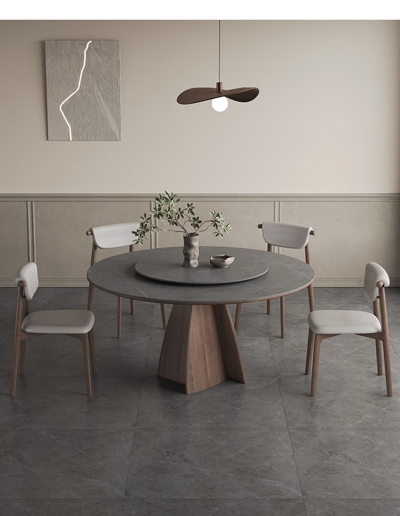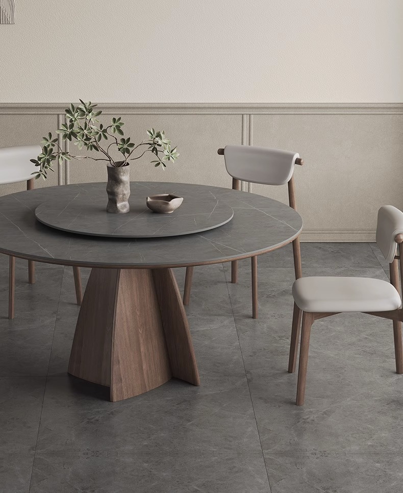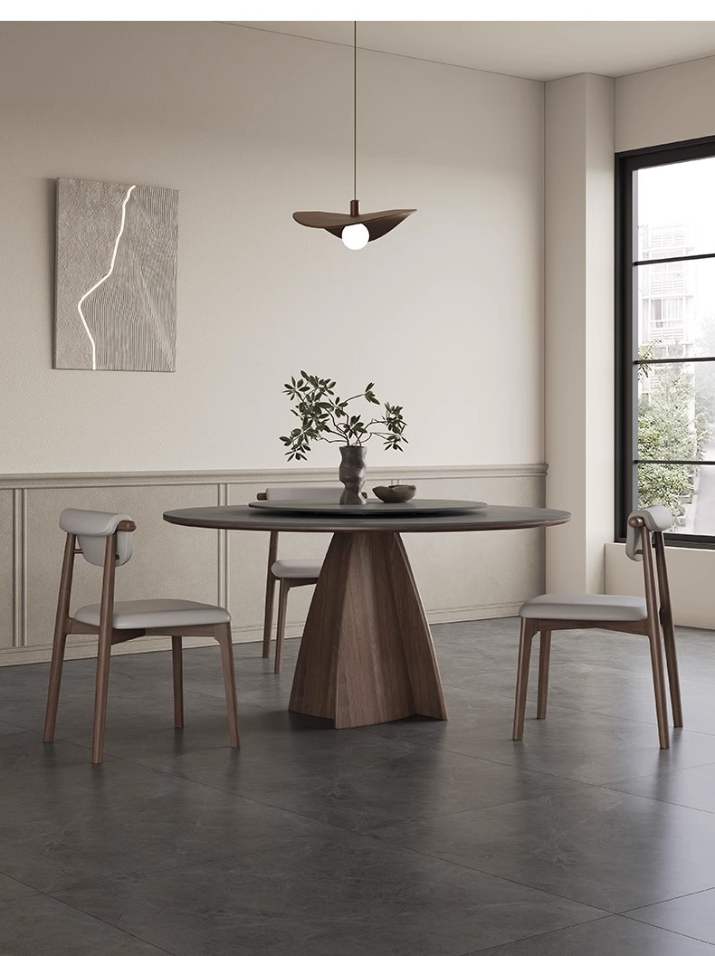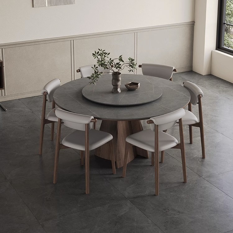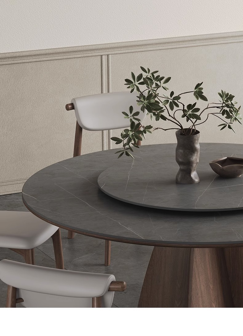 Bàn ăn tròn bằng gỗ nguyên khối cao cấp của Ý có bàn xoay cho gia đình sử dụng Bàn tròn đá phiến mờ màu óc chó mới kiểu wabi-sabi