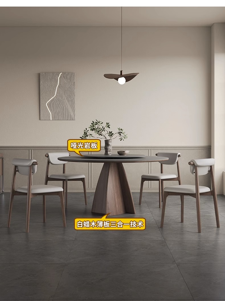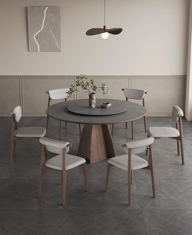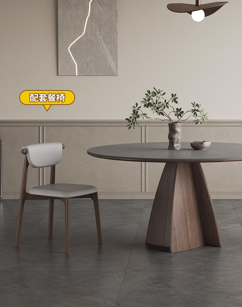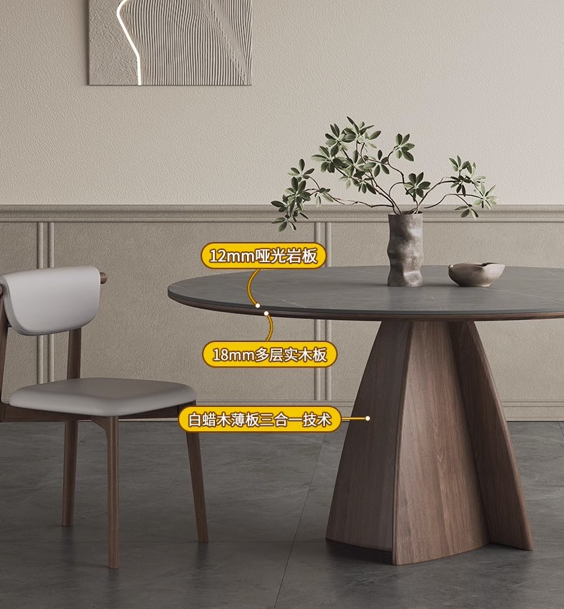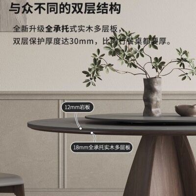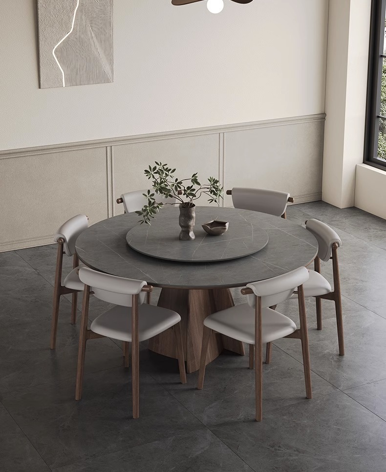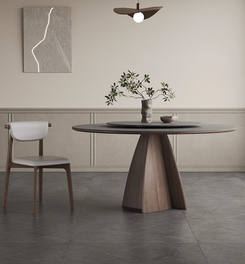 Bàn ăn tròn bằng gỗ nguyên khối cao cấp của Ý có bàn xoay cho gia đình sử dụng Bàn tròn đá phiến mờ màu óc chó mới kiểu wabi-sabi