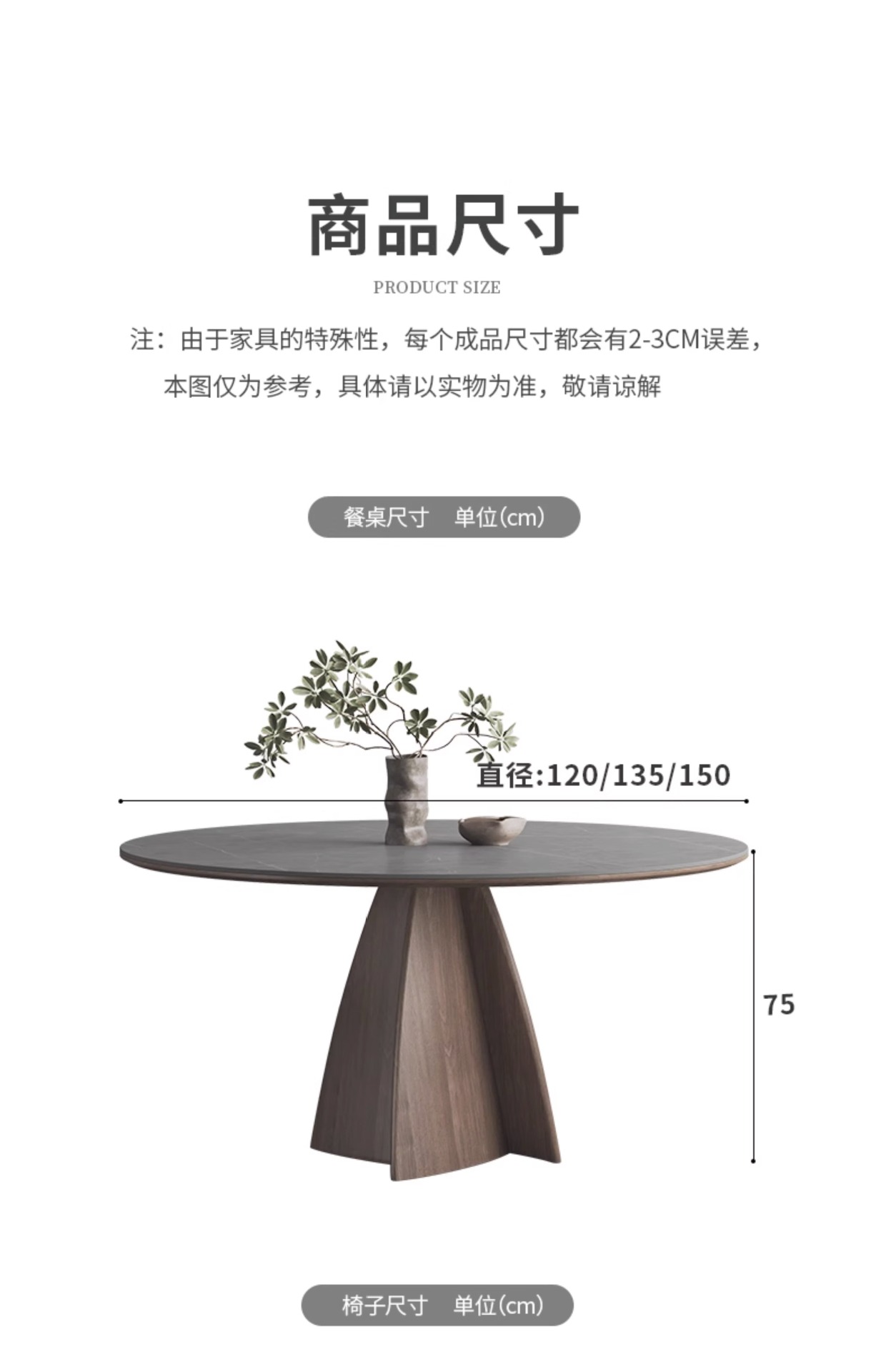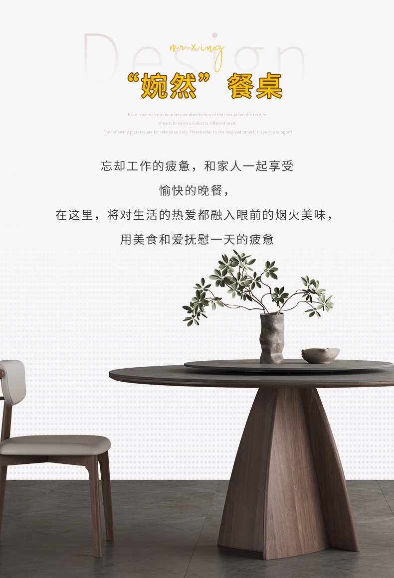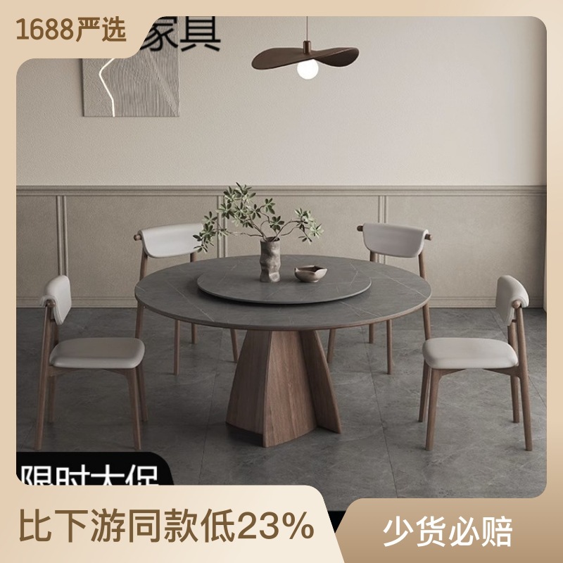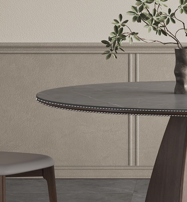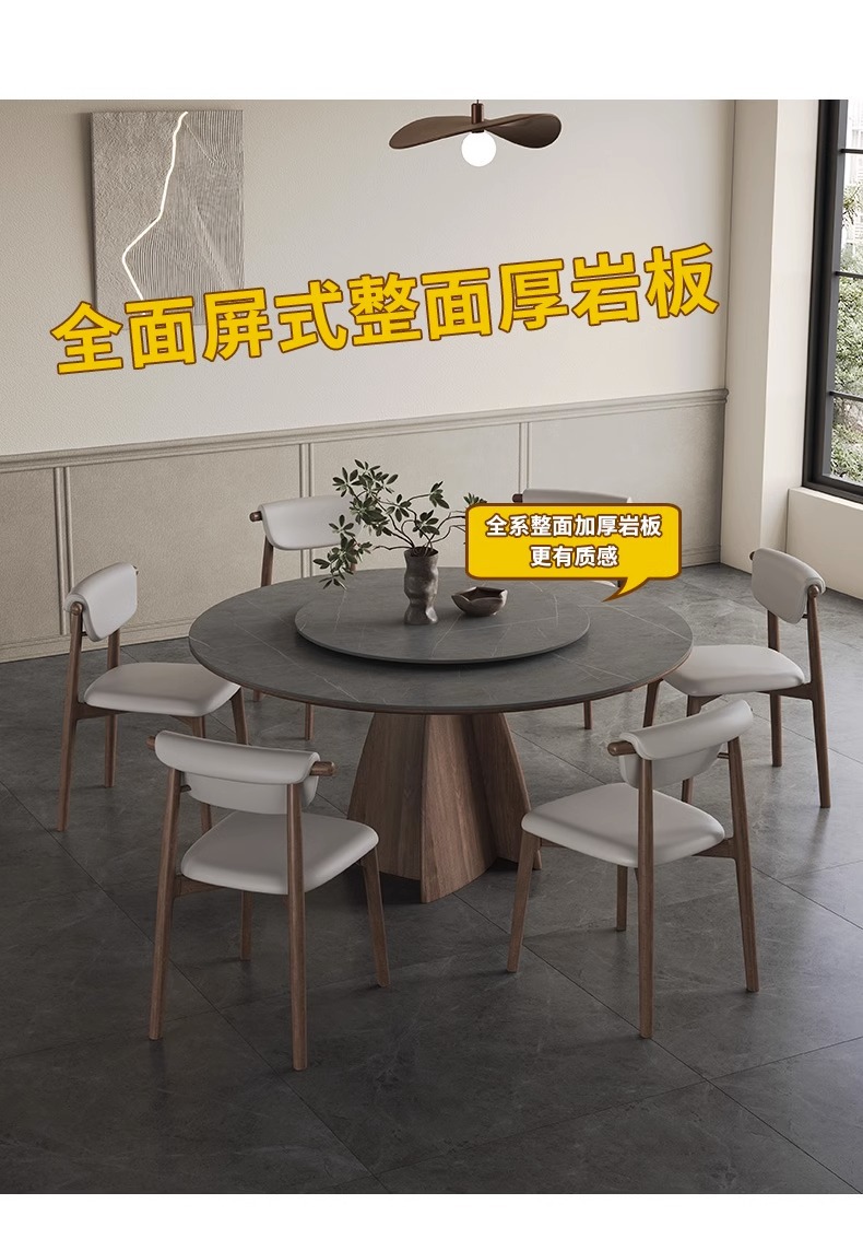 Bàn ăn tròn bằng gỗ nguyên khối cao cấp của Ý có bàn xoay cho gia đình sử dụng Bàn tròn đá phiến mờ màu óc chó mới kiểu wabi-sabi