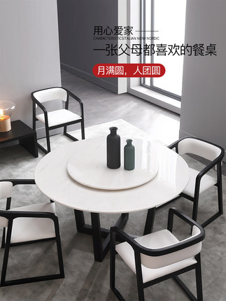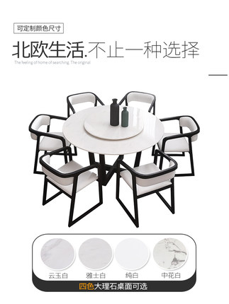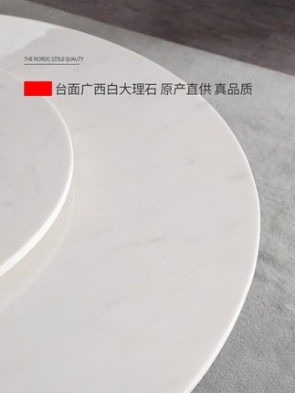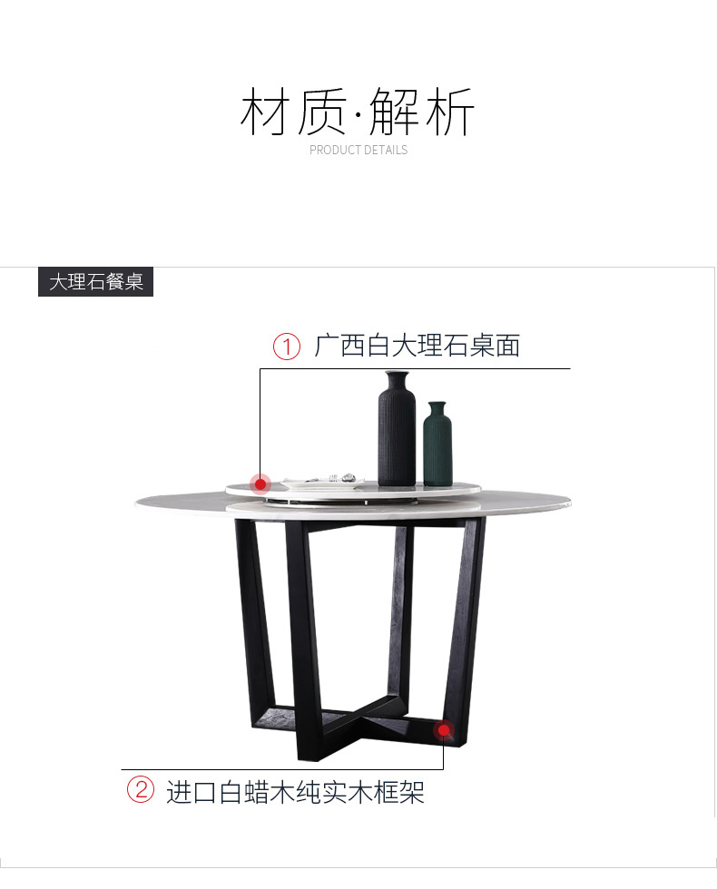 Bàn ăn tròn đá cẩm thạch, chân bàn gỗ.