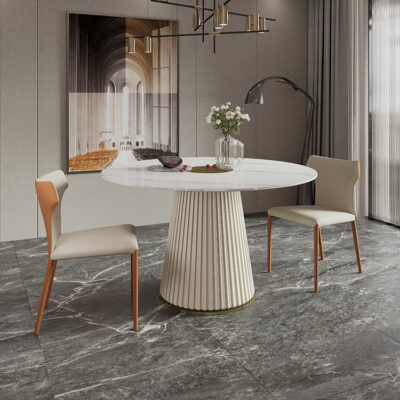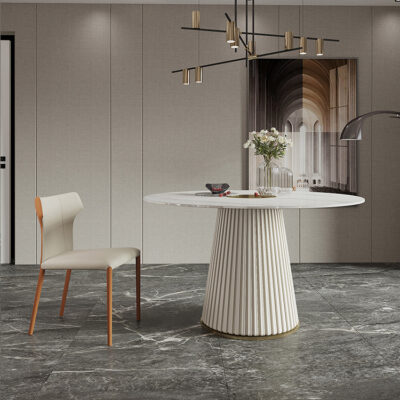 Bàn ăn tròn đá phiến đơn giản hiện đại của Ý dành cho gia đình Bàn ghế ăn chung cư nhỏ kết hợp với bàn xoay Bàn tròn 8 người