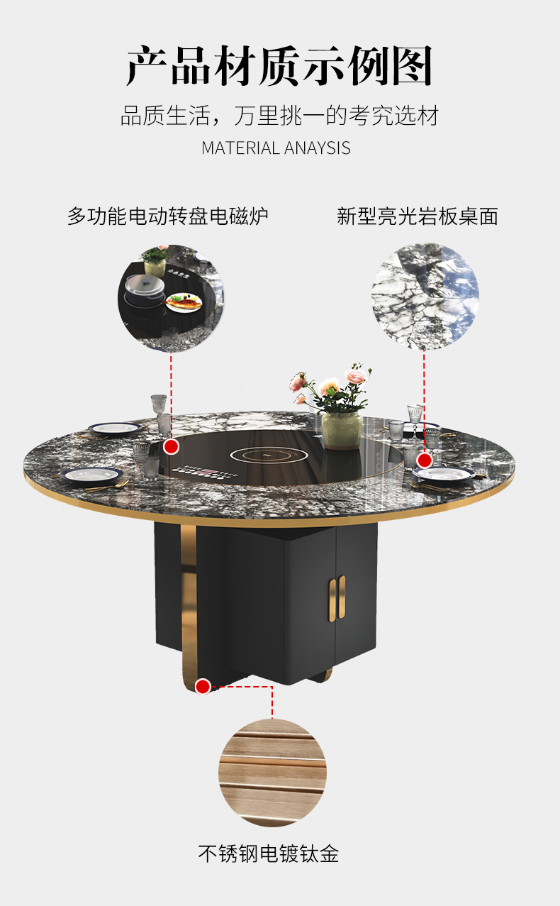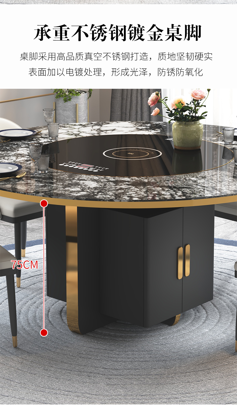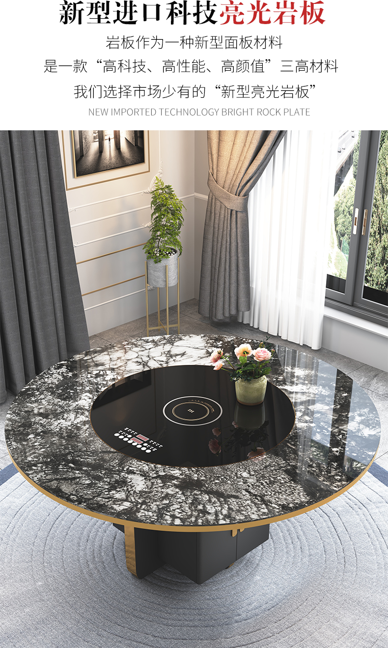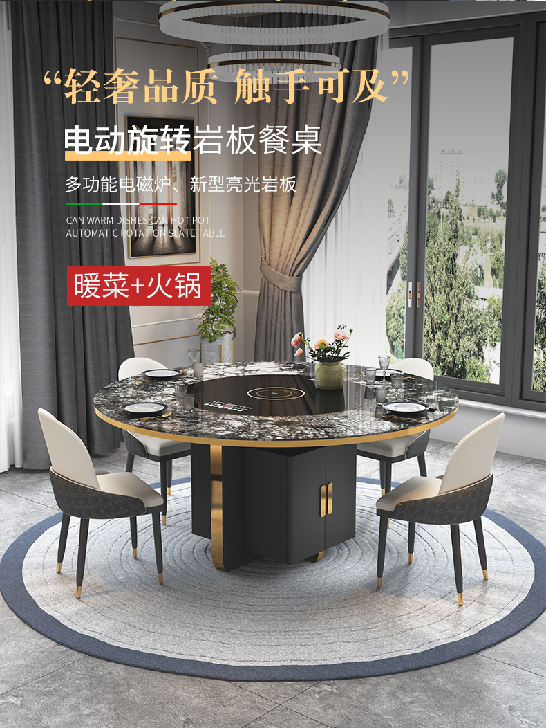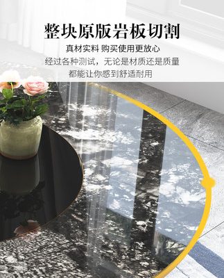 Bàn ăn tròn đá phiến nhập khẩu. là sản phẩm nổi bật trong dòng bàn ăn nhập khẩu, thiết kế hiện đại và sang trọng, phù hợp với nhiều không gian nội thất cao cấp.