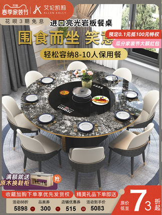 Bàn ăn tròn đá phiến nhập khẩu.
