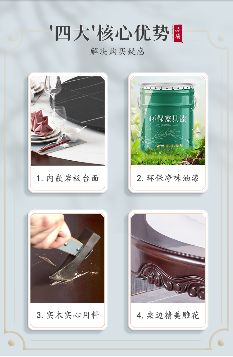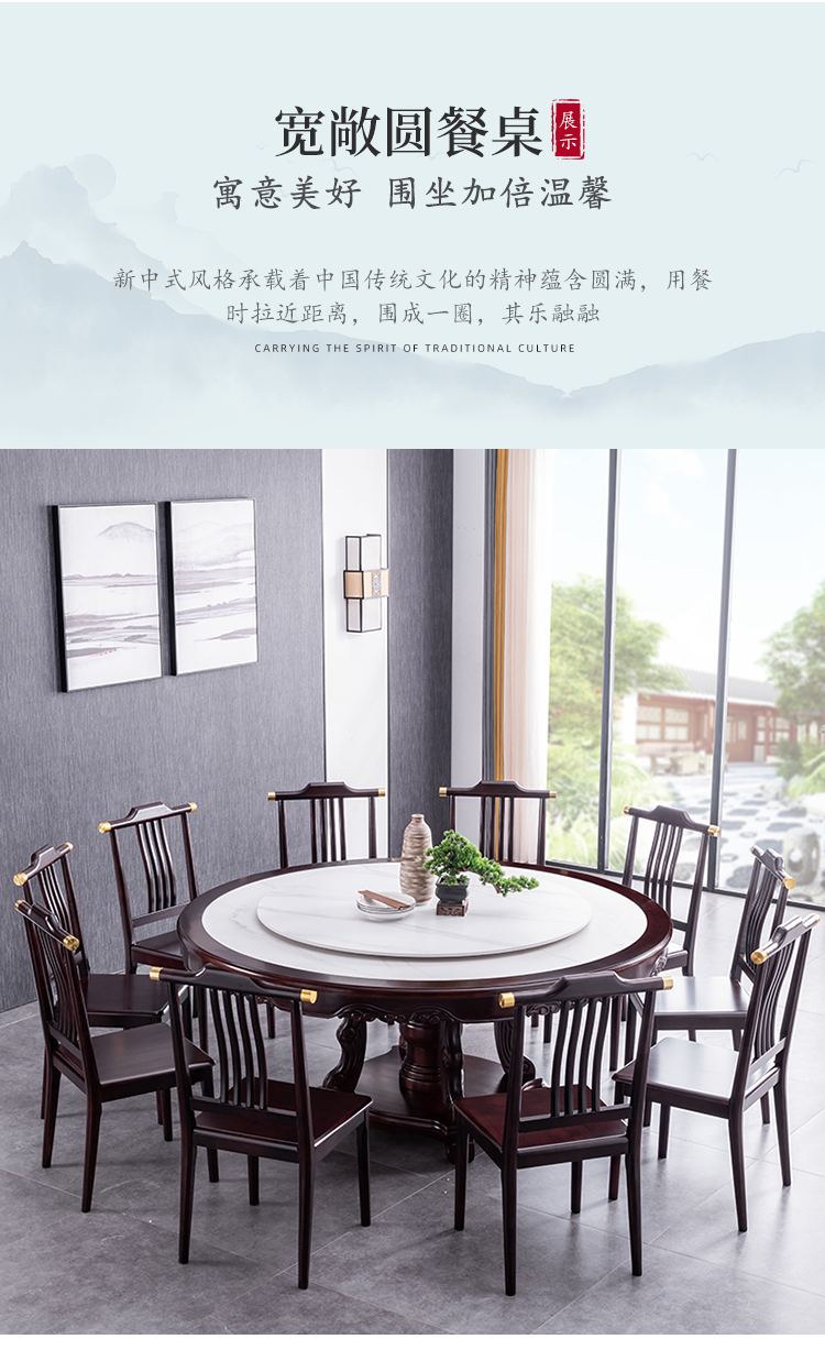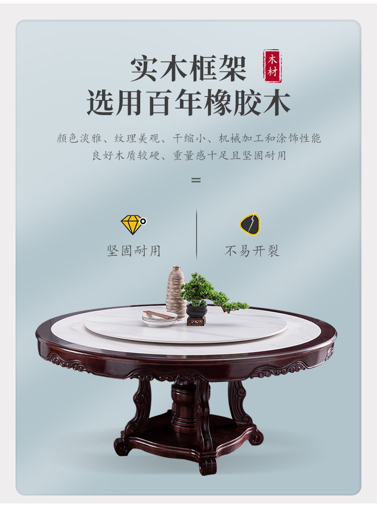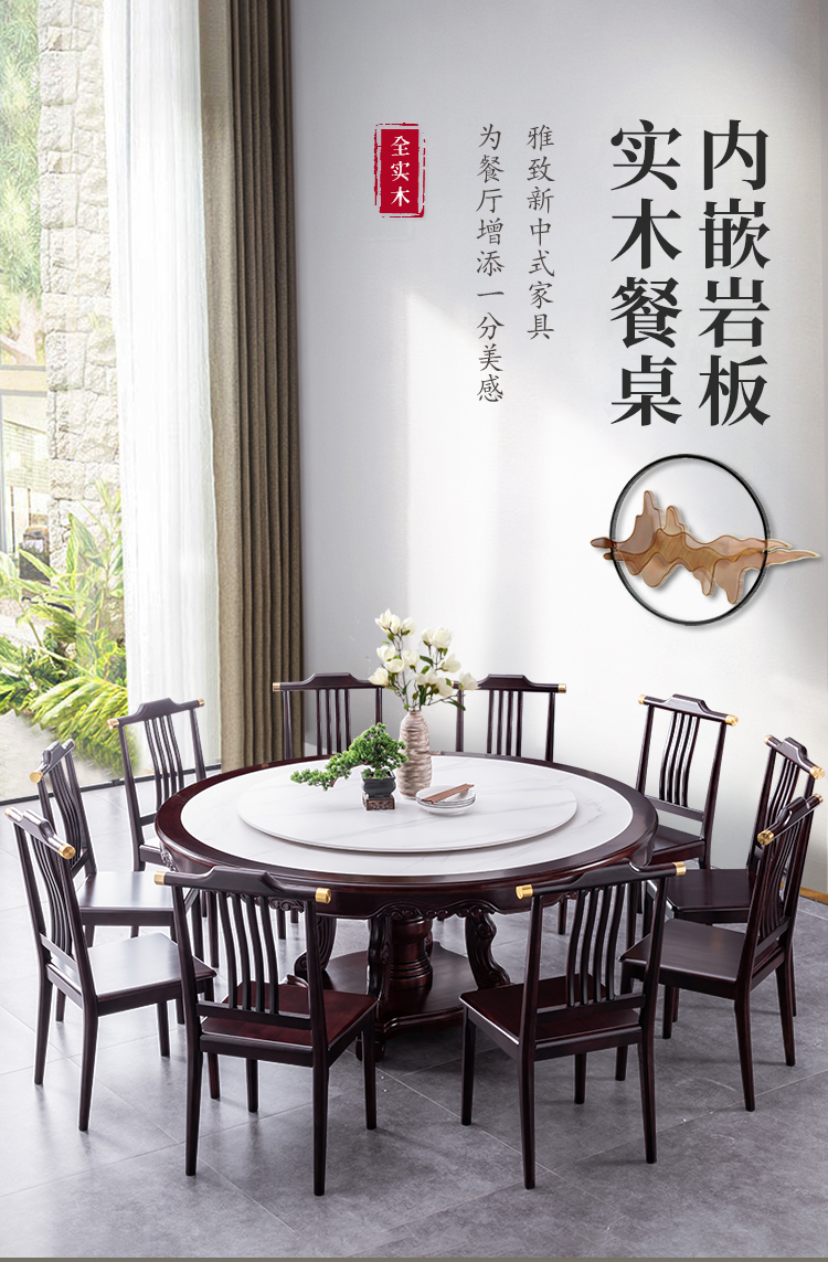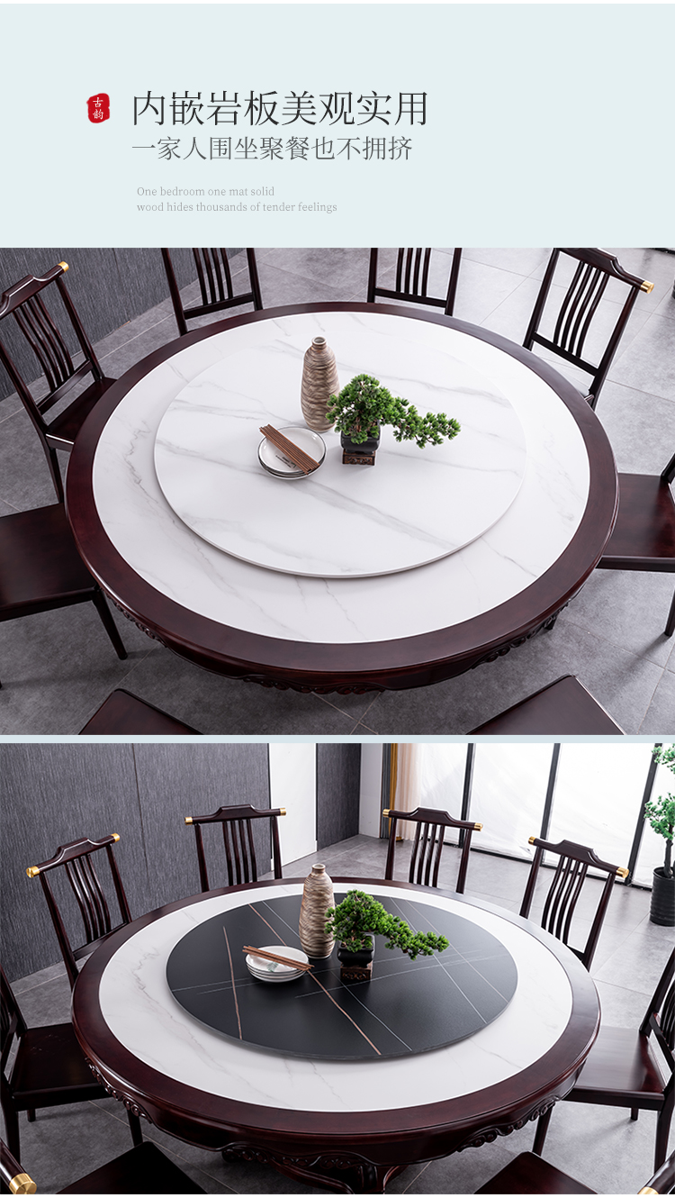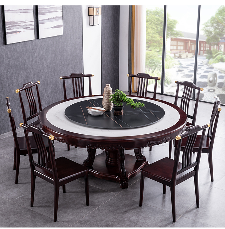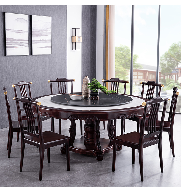 Bàn ăn tròn gỗ nguyên khối nhập khẩu cao cấp kiểu mới kiểu Trung Quốc, bàn xoay điện, căn hộ rộng 1,8m, 2m, bàn tròn mặt đá – Bàn ăn nhập khẩu cao cấp
