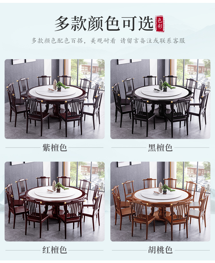 Bàn ăn tròn gỗ nguyên khối nhập khẩu cao cấp kiểu mới kiểu Trung Quốc, bàn xoay điện, căn hộ rộng 1,8m, 2m, bàn tròn mặt đá.