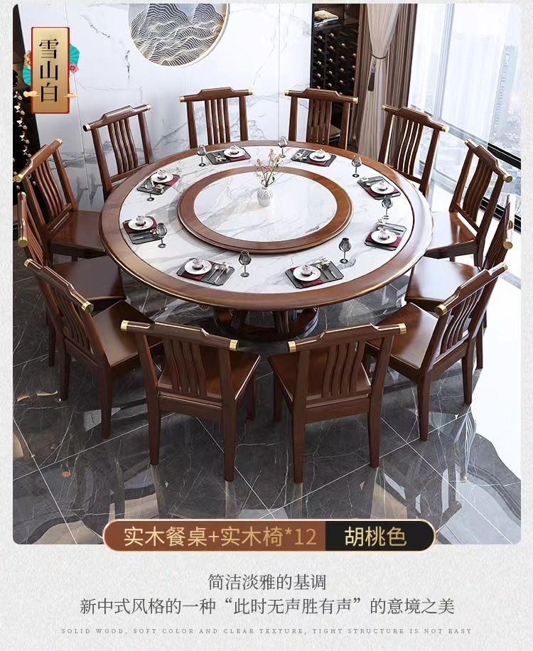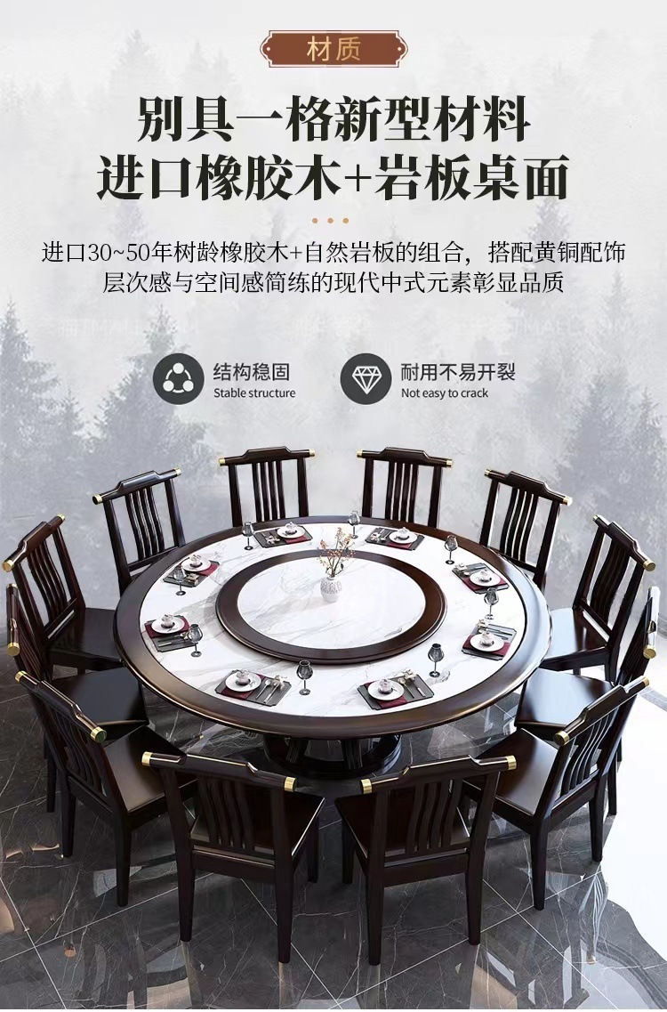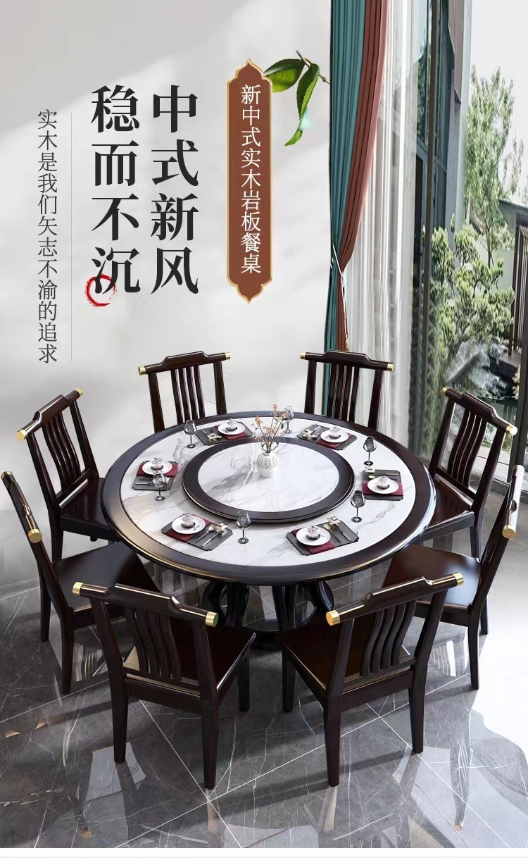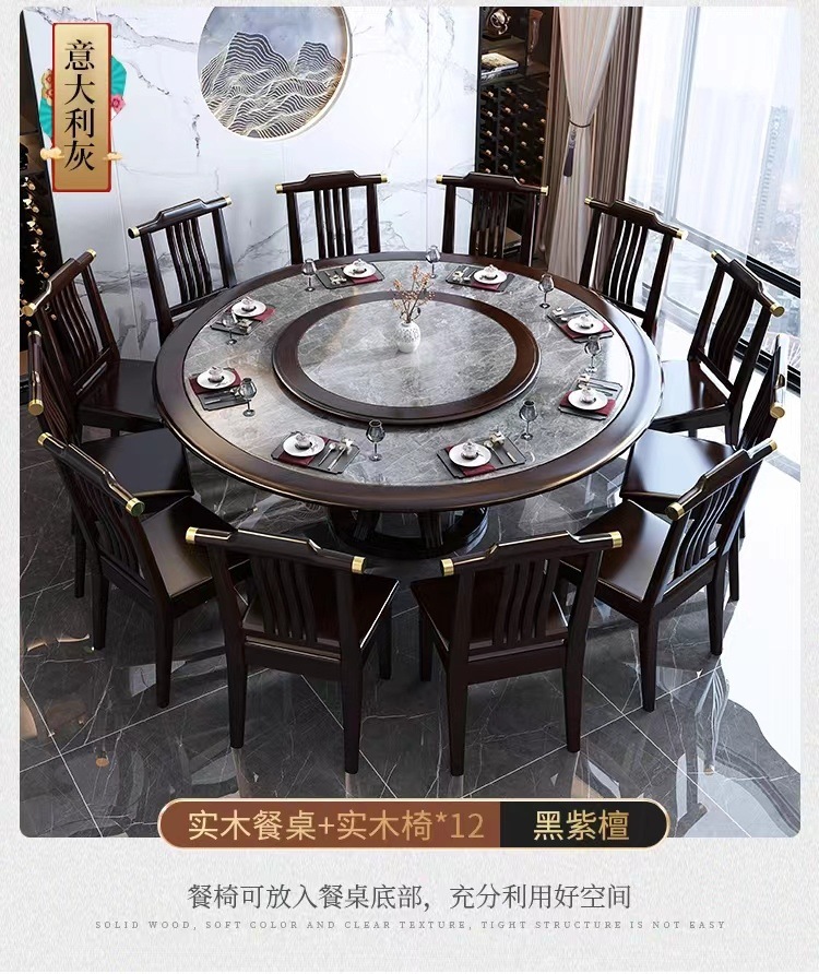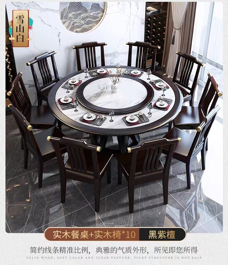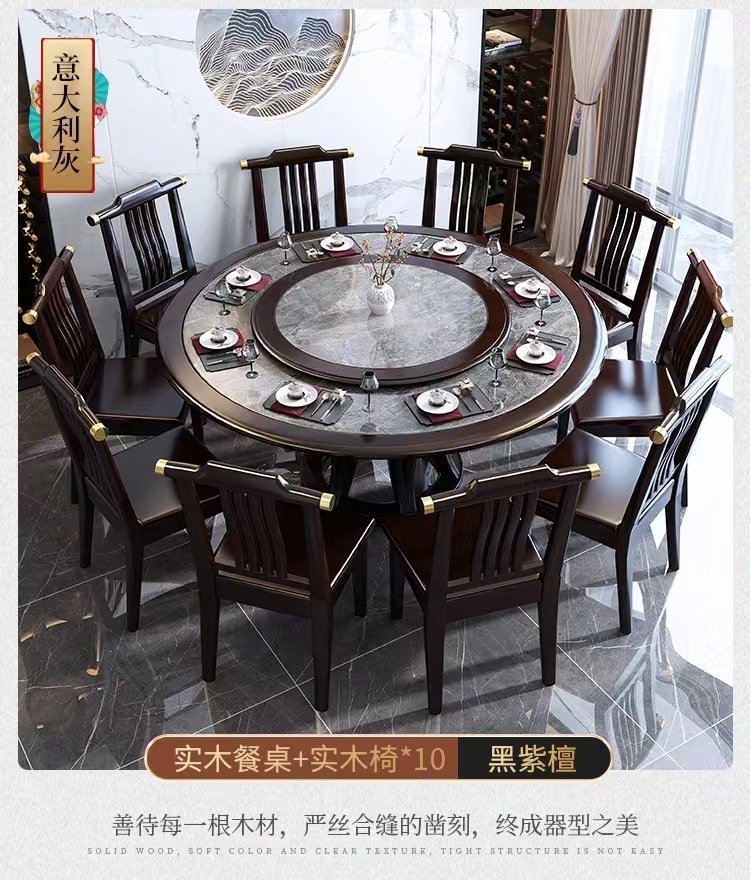 Bàn ăn tròn kết hợp ghế đá kiểu Trung Quốc mới Bàn ăn gỗ đặc 10 người ăn Bàn tròn lớn Bàn ăn gia đình