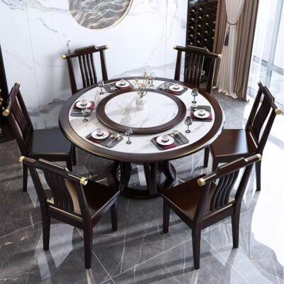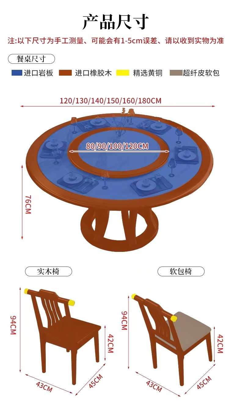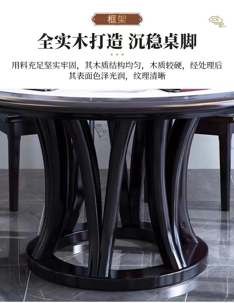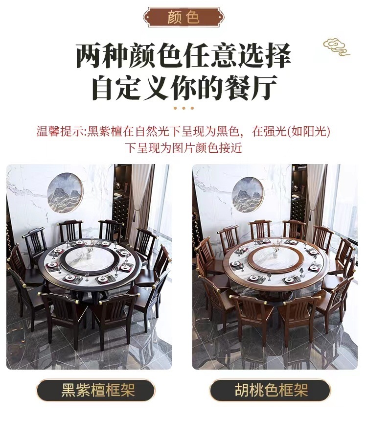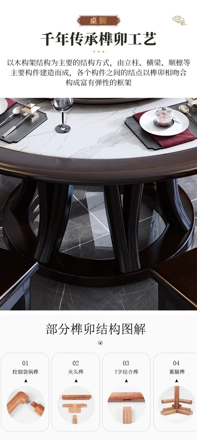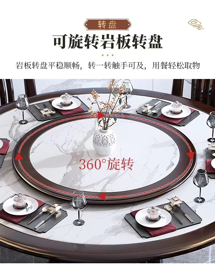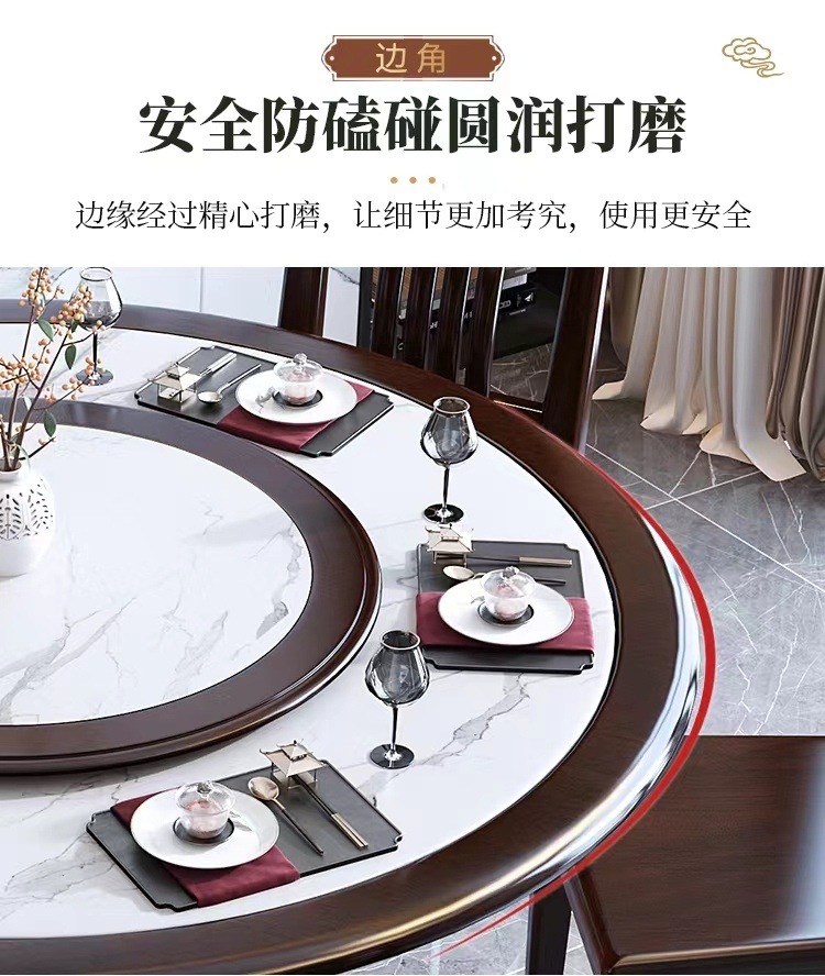 Bàn ăn tròn kết hợp ghế đá kiểu Trung Quốc mới Bàn ăn gỗ đặc 10 người ăn Bàn tròn lớn Bàn ăn gia đình