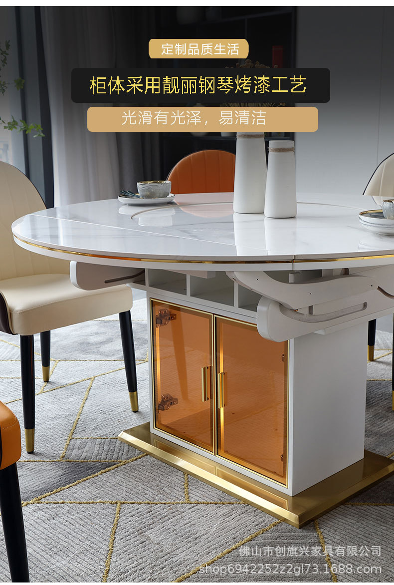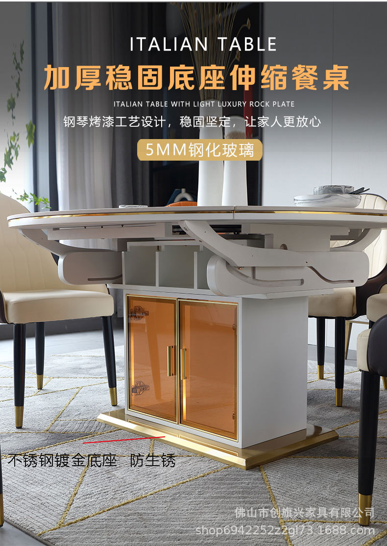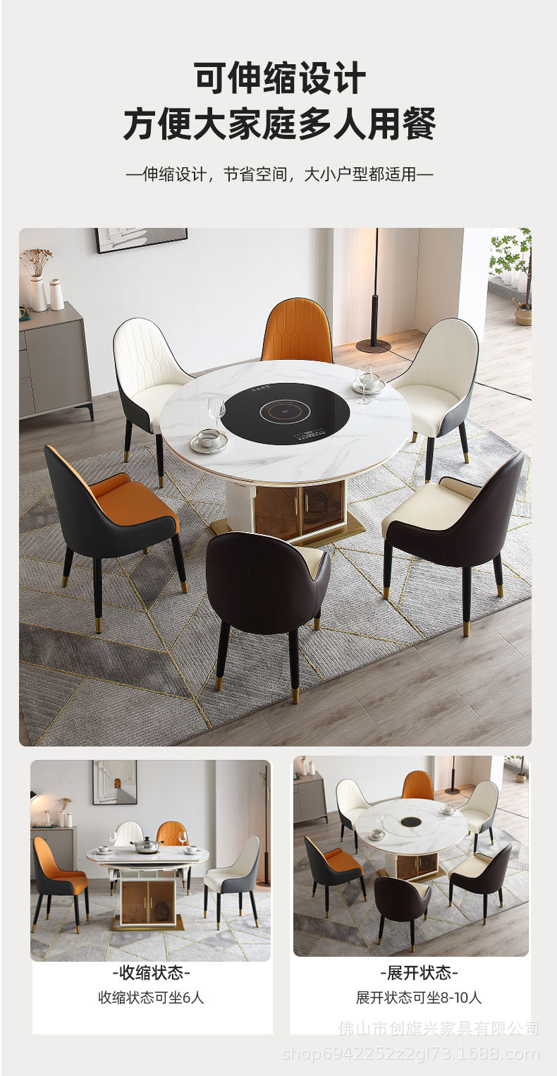 Bàn ăn tròn mặt đá kính nhẹ nhàng sang trọng tích hợp bảng hâm nóng xoay điện có bếp từ bàn ăn đa năng dùng cho gia đình là sản phẩm nổi bật trong dòng bàn ăn nhập khẩu, thiết kế hiện đại và sang trọng, phù hợp với nhiều không gian nội thất cao cấp.