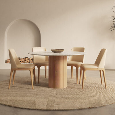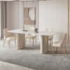 Bàn ăn tròn terrazzo phong cách kem kiểu Pháp hiện đại đơn giản hộ gia đình căn hộ nhỏ 6 người kết hợp bàn ăn gỗ đặc và ghế