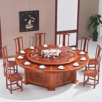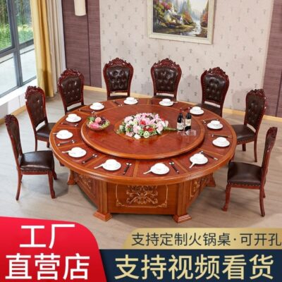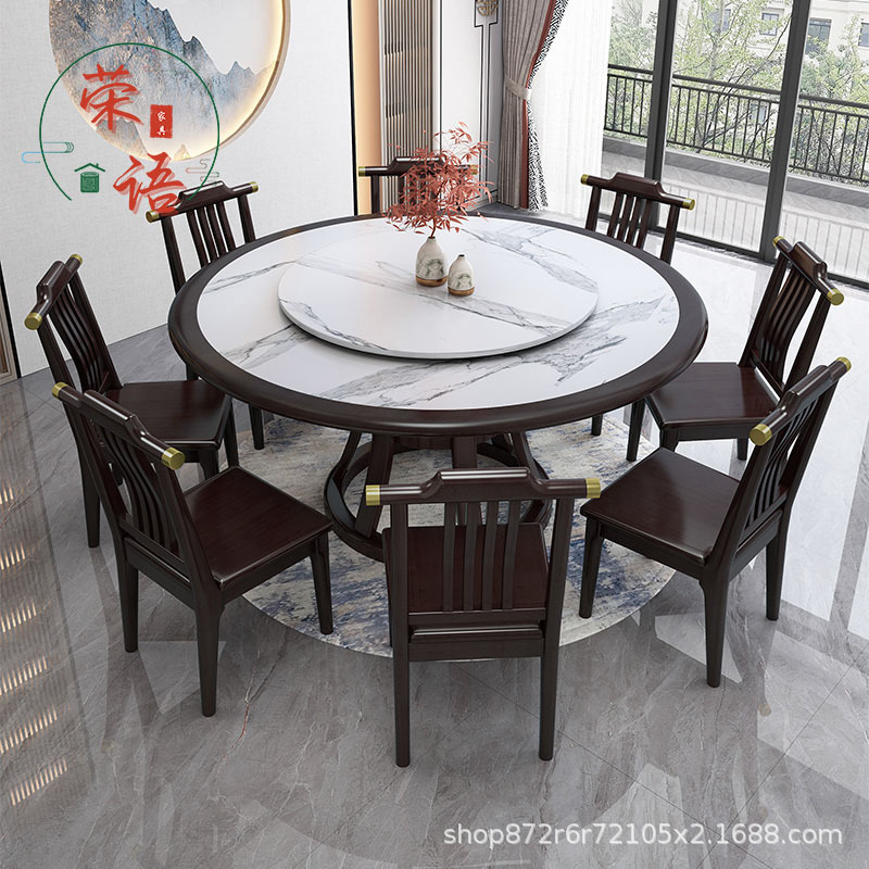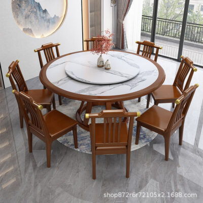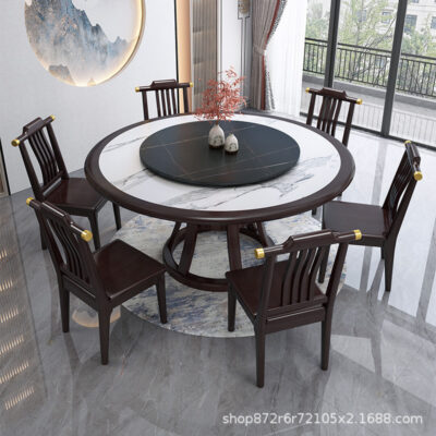 Bàn ăn Trung Quốc mới tấm đá Bàn ăn gỗ chắc chắn và ghế nhà với bàn xoay 10 người bàn tròn lớn Bàn ăn khách sạn – Bàn ăn nhập khẩu cao cấp