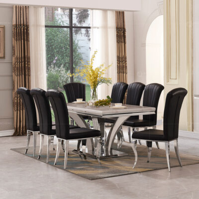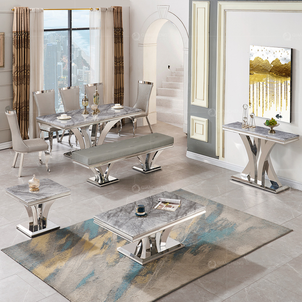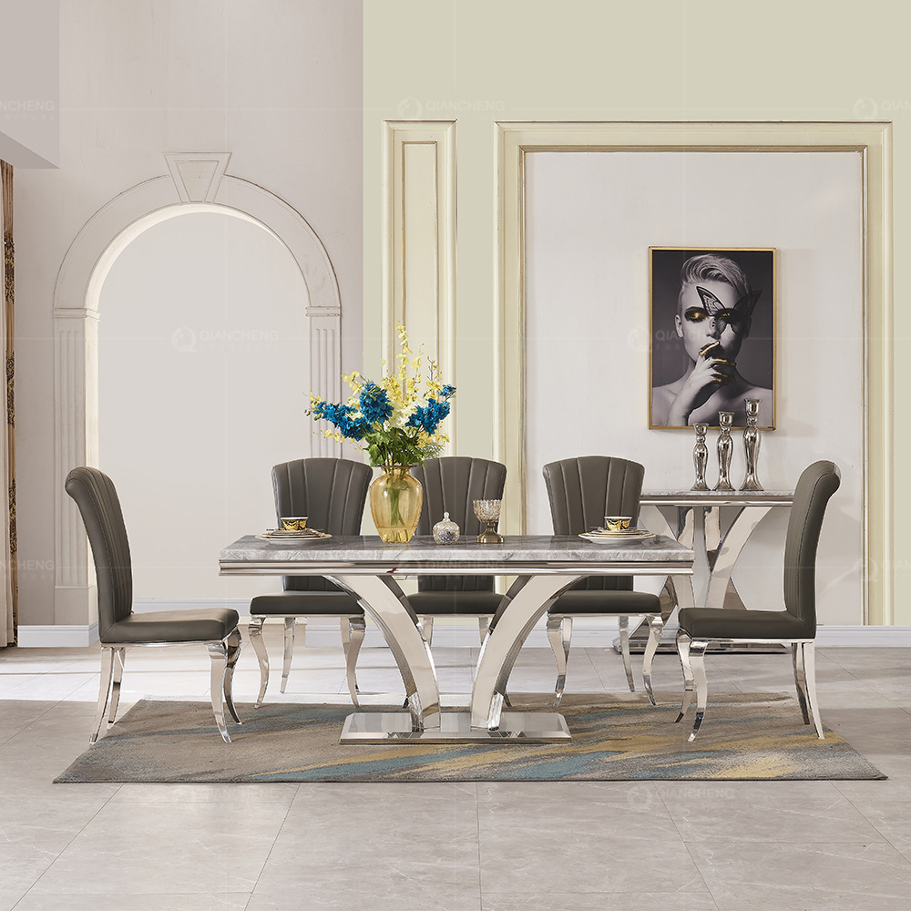 Bàn ăn và ghế bằng đá cẩm thạch sang trọng nhẹ kết hợp sáng tạo hộ gia đình bàn ăn hình chữ nhật bằng thép không gỉ bàn ăn dinning teble