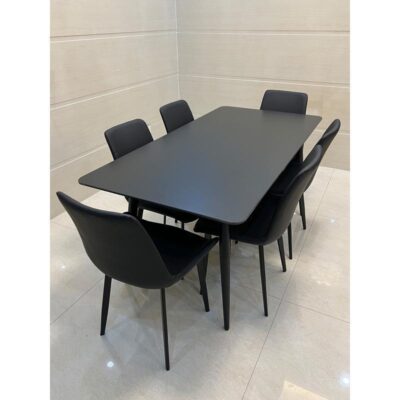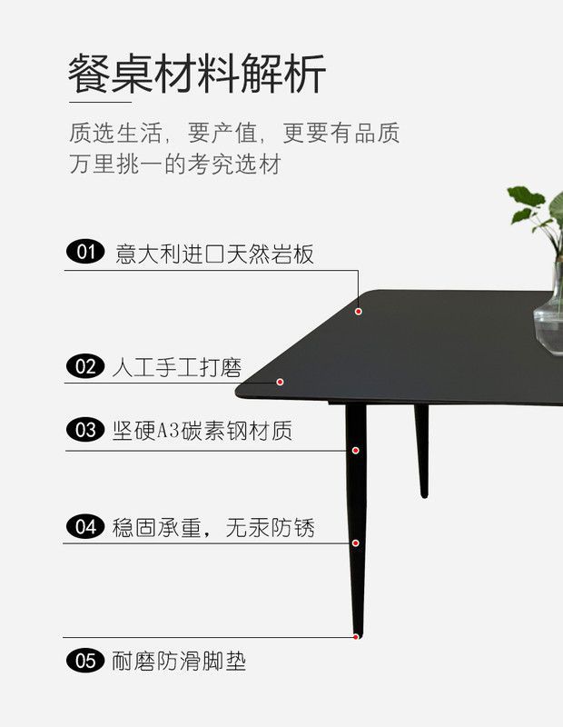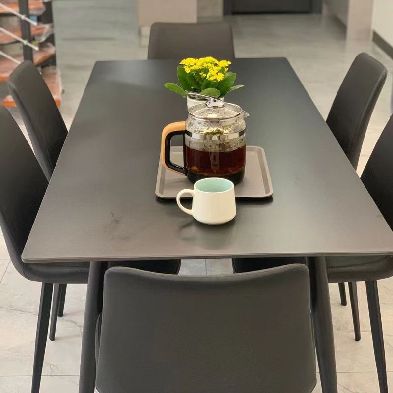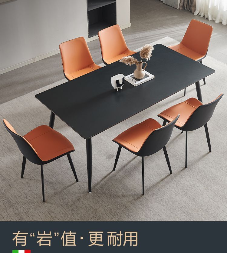 Bàn ăn và ghế đá phiến đen mờ tinh khiết của Ý kết hợp bàn ăn chữ nhật màu đỏ đơn giản hiện đại tại nhà – Bàn ăn nhập khẩu cao cấp
