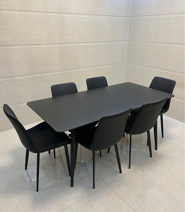 Bàn ăn và ghế đá phiến đen mờ tinh khiết của Ý kết hợp bàn ăn chữ nhật màu đỏ đơn giản hiện đại tại nhà