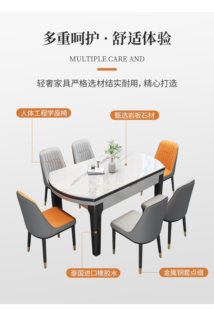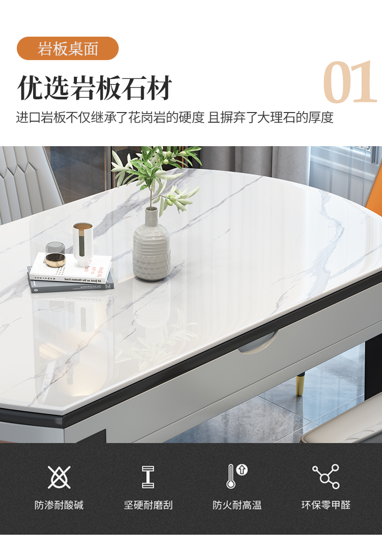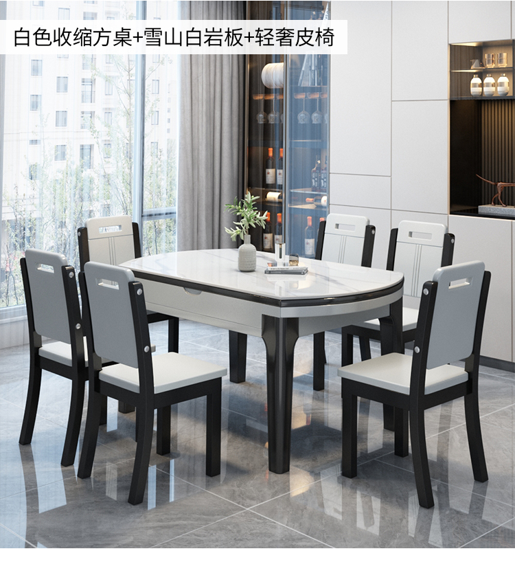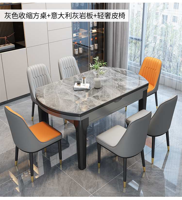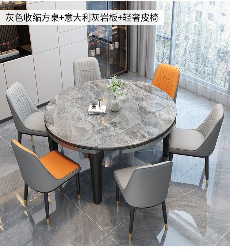Bàn ăn và ghế đá phiến sáng kết hợp kính thiên văn gấp hiện đại tối giản ánh sáng sang trọng nhà căn hộ nhỏ bàn tròn có thể thay đổi bàn ăn – Bàn ăn nhập khẩu cao cấp