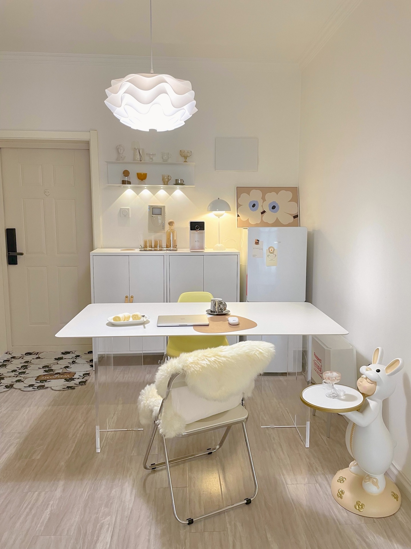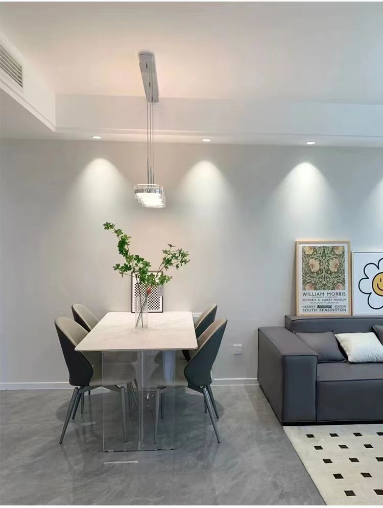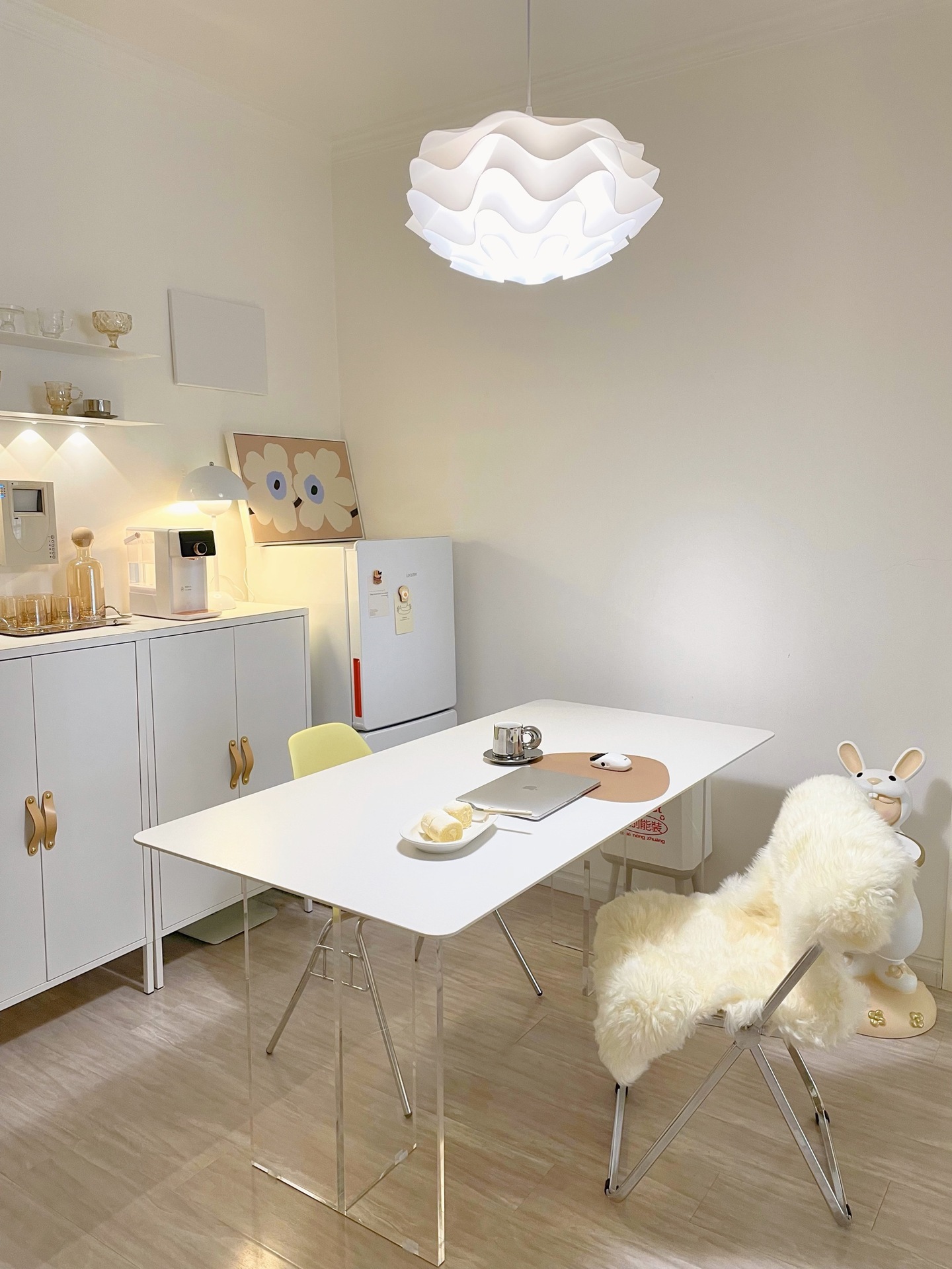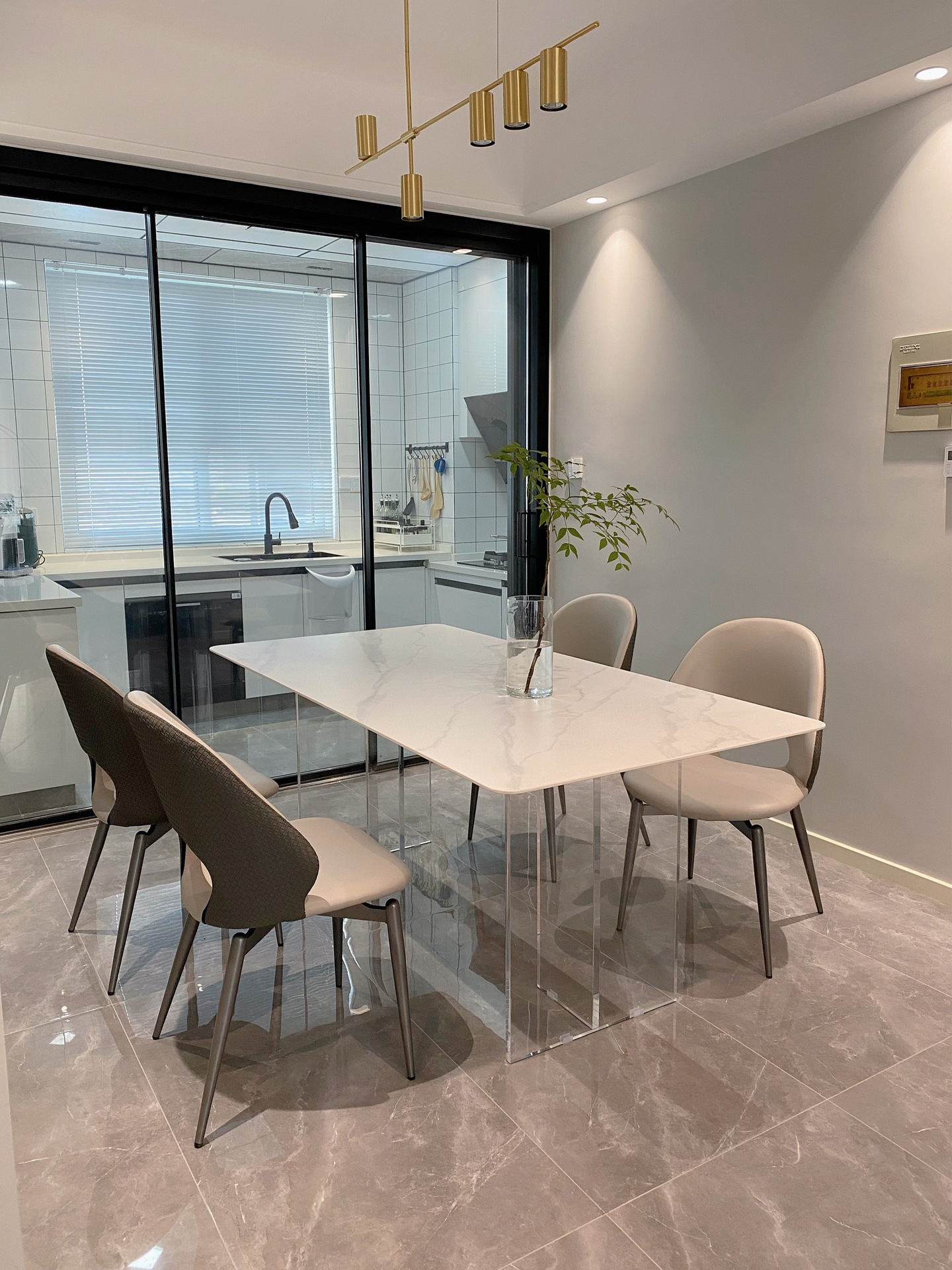 Bàn ăn và ghế kết hợp phiến đá trắng acrylic treo gia đình hình chữ nhật thiết kế nhà đơn giản kiểu lưới màu đỏ