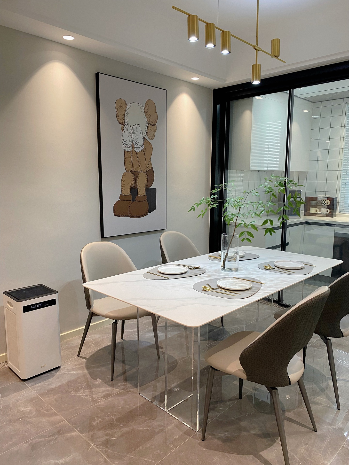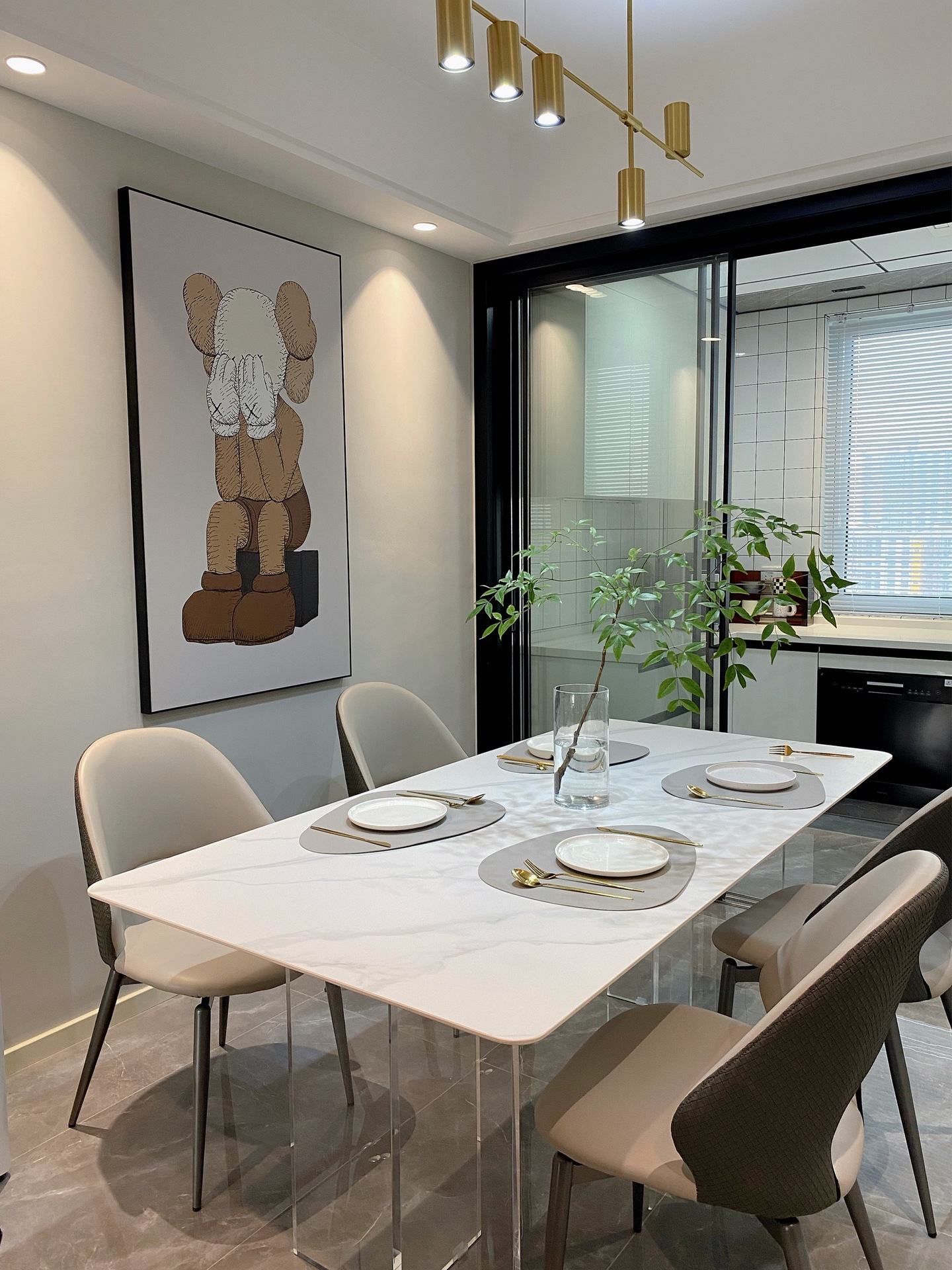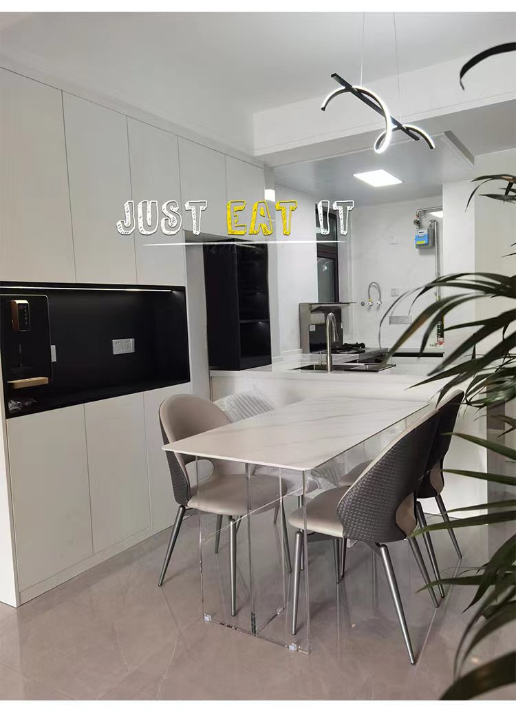 Bàn ăn và ghế kết hợp phiến đá trắng acrylic treo gia đình hình chữ nhật thiết kế nhà đơn giản kiểu lưới màu đỏ