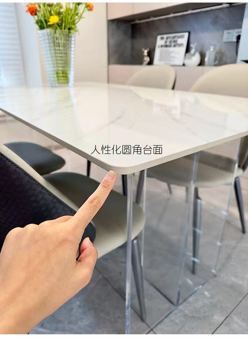 Bàn ăn và ghế kết hợp phiến đá trắng acrylic treo gia đình hình chữ nhật thiết kế nhà đơn giản kiểu lưới màu đỏ