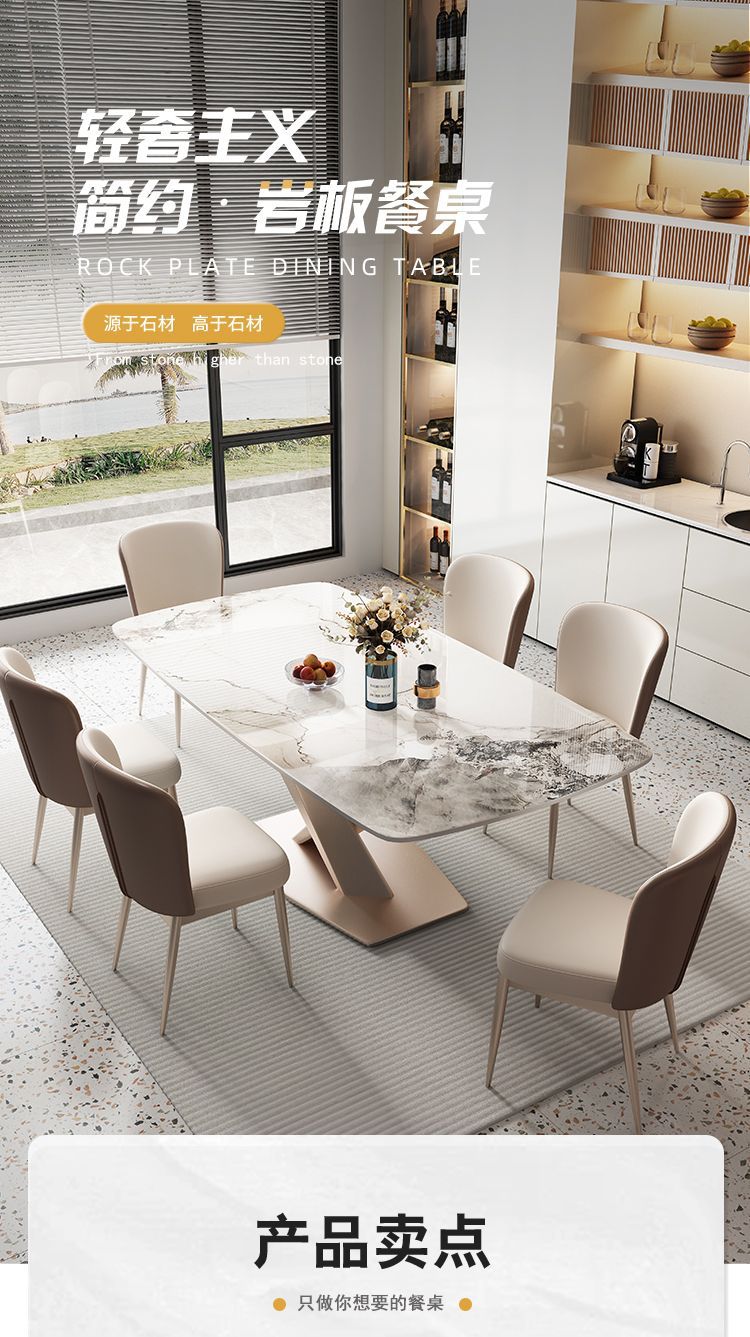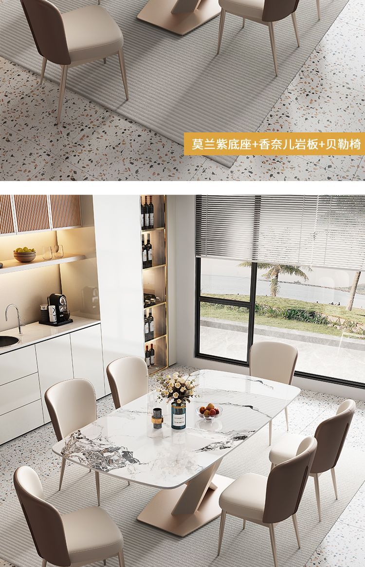 Bàn ăn và ghế kết hợp tấm đá sang trọng nhẹ của Ý đơn giản hiện đại gia đình hộ gia đình hình chữ nhật bàn ăn phương tây bàn ăn là sản phẩm nổi bật trong dòng bàn ăn nhập khẩu, thiết kế hiện đại và sang trọng, phù hợp với nhiều không gian nội thất cao cấp.