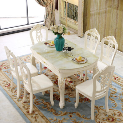 Bàn ăn và ghế theo phong cách châu Âu kết hợp gia đình tối giản hiện đại bàn ăn bằng đá cẩm thạch bằng gỗ cứng Bàn tròn đa chức năng gấp gọn bằng kính – Bàn ăn nhập khẩu cao cấp