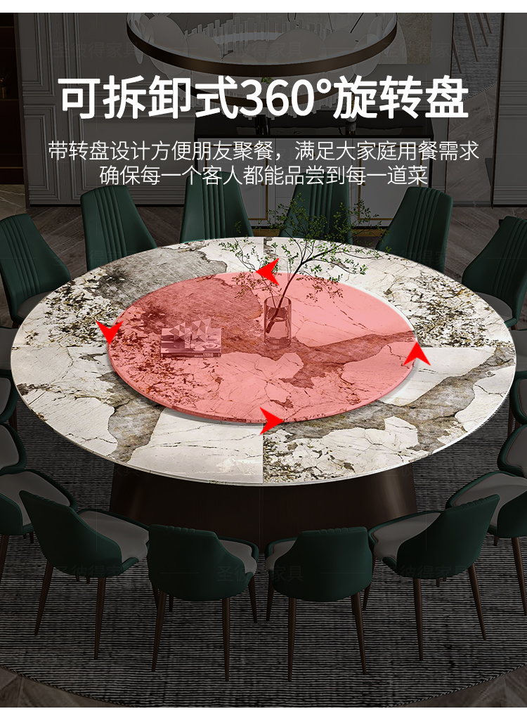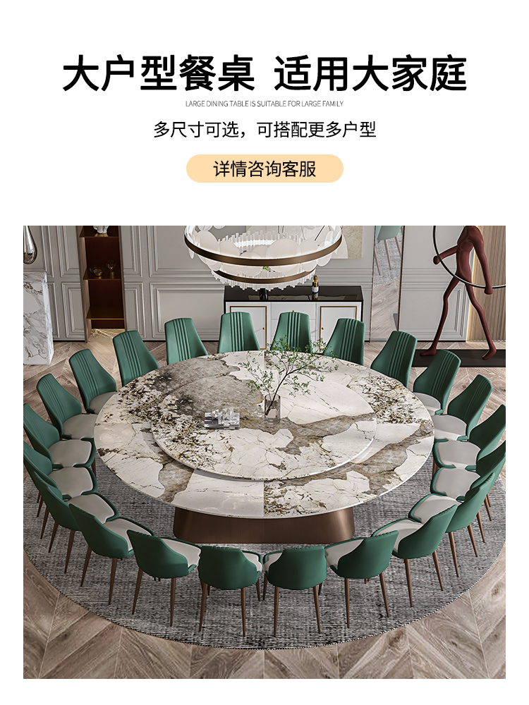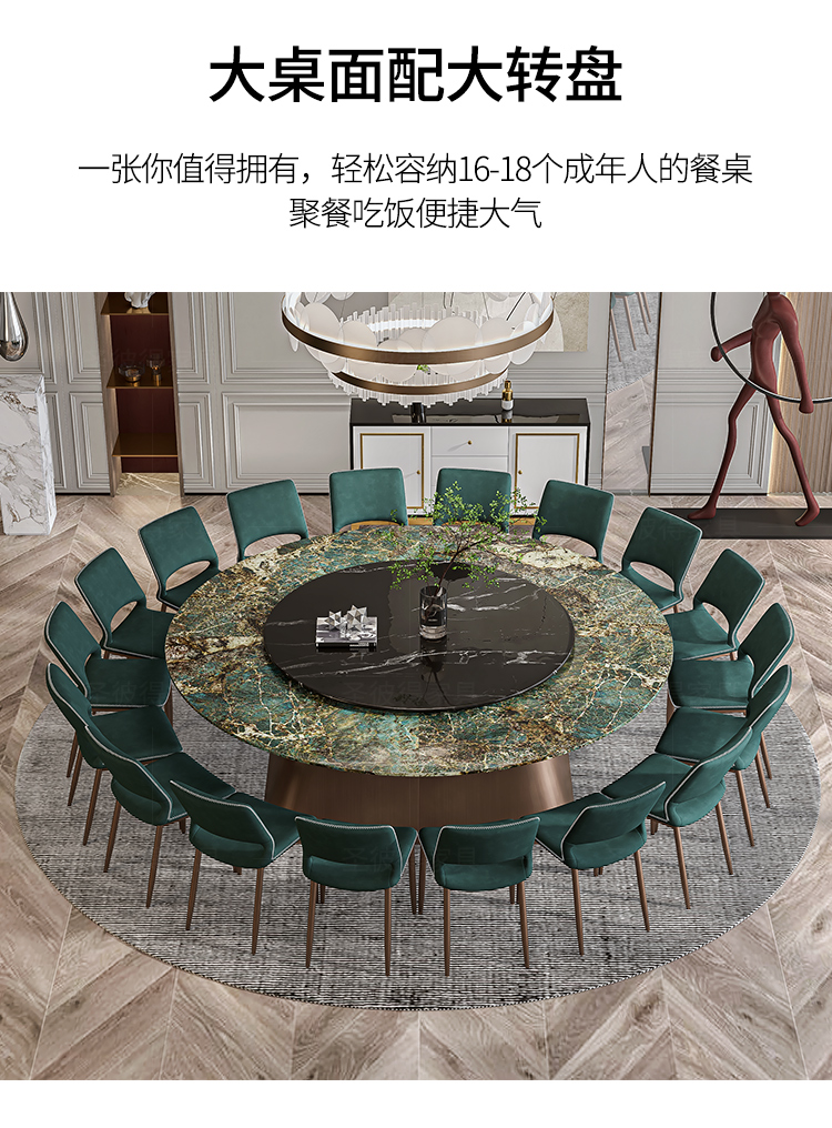 Bàn ăn xoay lớn dành cho 20 người. là sản phẩm nổi bật trong dòng bàn ăn nhập khẩu, thiết kế hiện đại và sang trọng, phù hợp với nhiều không gian nội thất cao cấp.