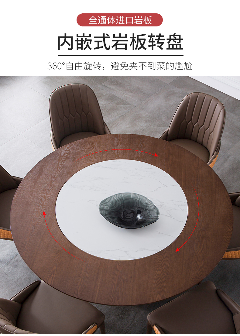 Bàn ăn xoay, màu nâu sang trọng. là sản phẩm nổi bật trong dòng bàn ăn nhập khẩu, thiết kế hiện đại và sang trọng, phù hợp với nhiều không gian nội thất cao cấp.