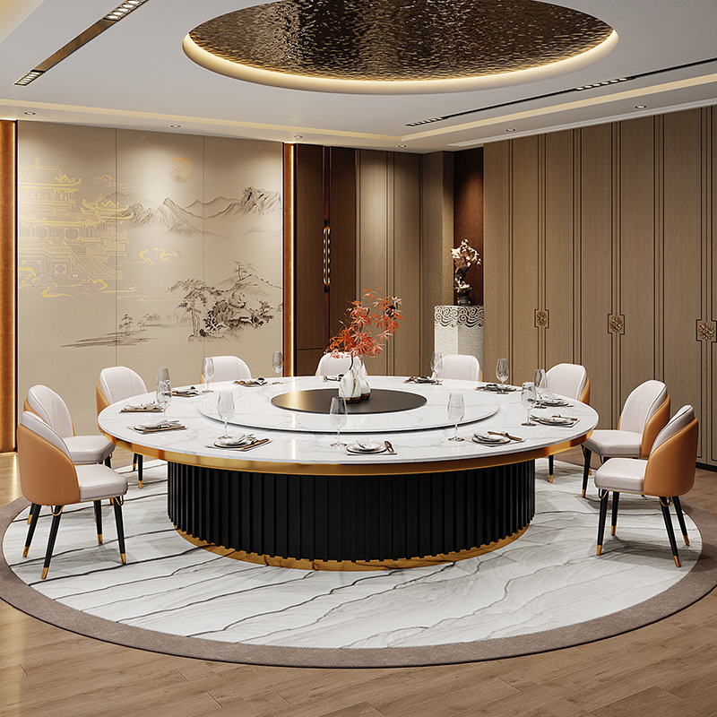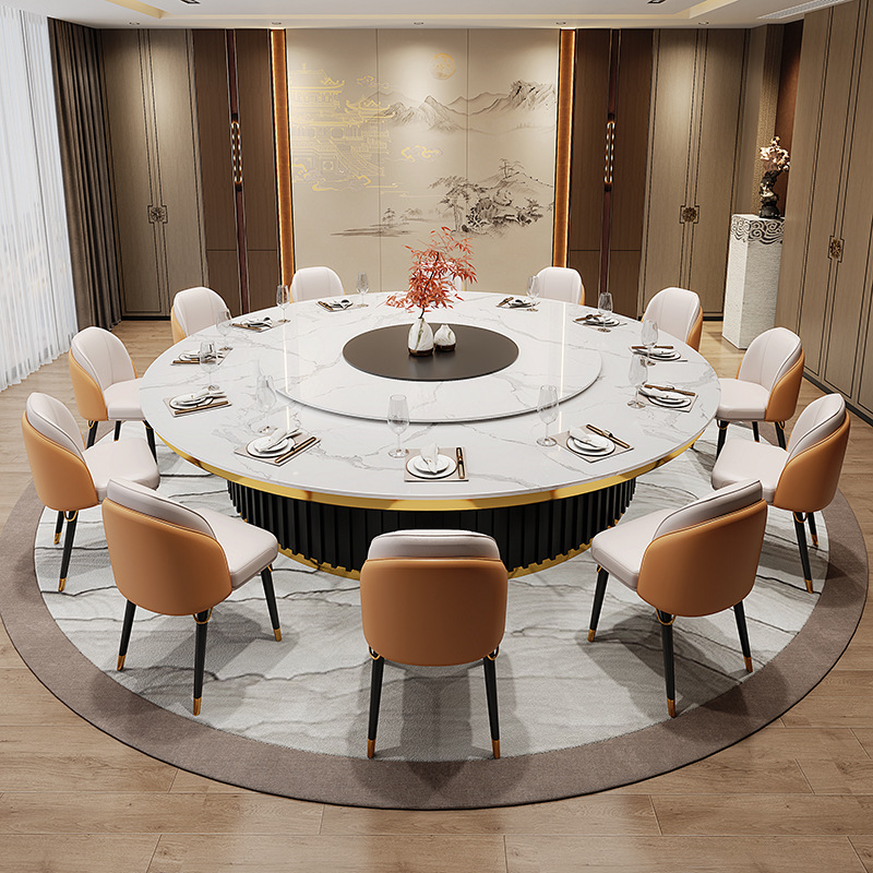 Bàn ăn xoay tự động bàn tròn lớn hộp khách sạn tiệc bàn đá phiến có bàn xoay bàn ăn lớn bàn tròn 10 người 20 người