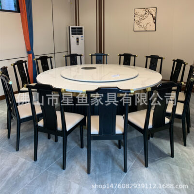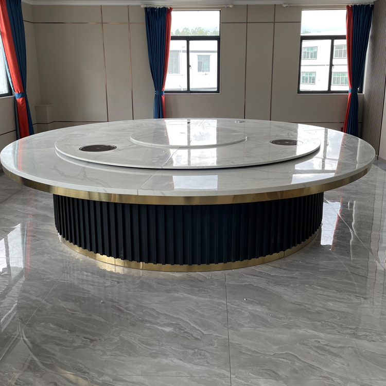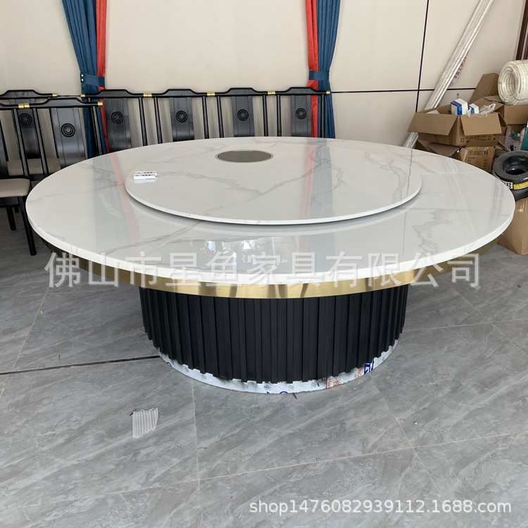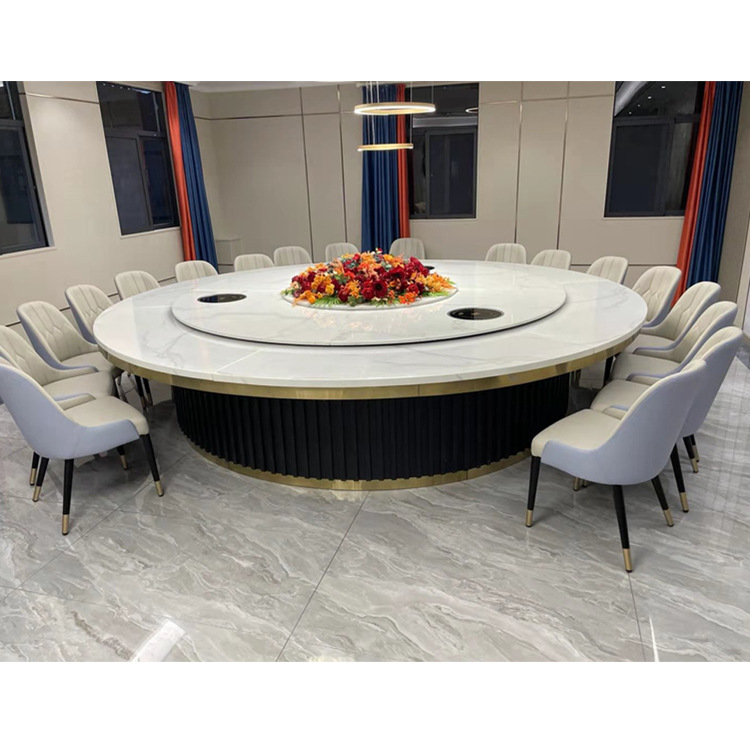 Bàn ăn xoay tự động đá phiến cho 20 người bàn tròn lớn đèn khách sạn sang trọng câu lạc bộ nhà hàng Lẩu bàn ăn xoay tự động bàn ghế tròn