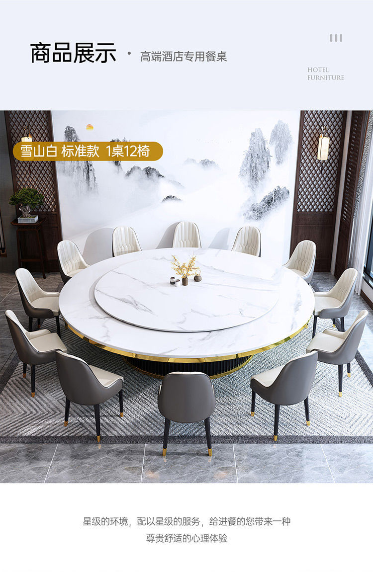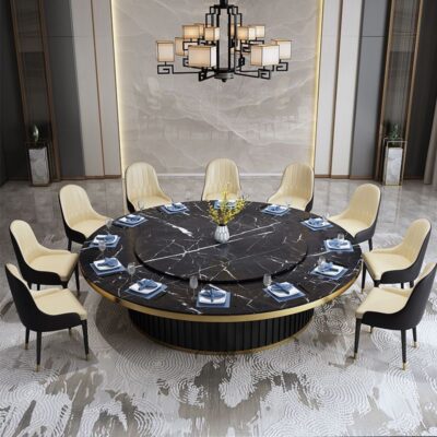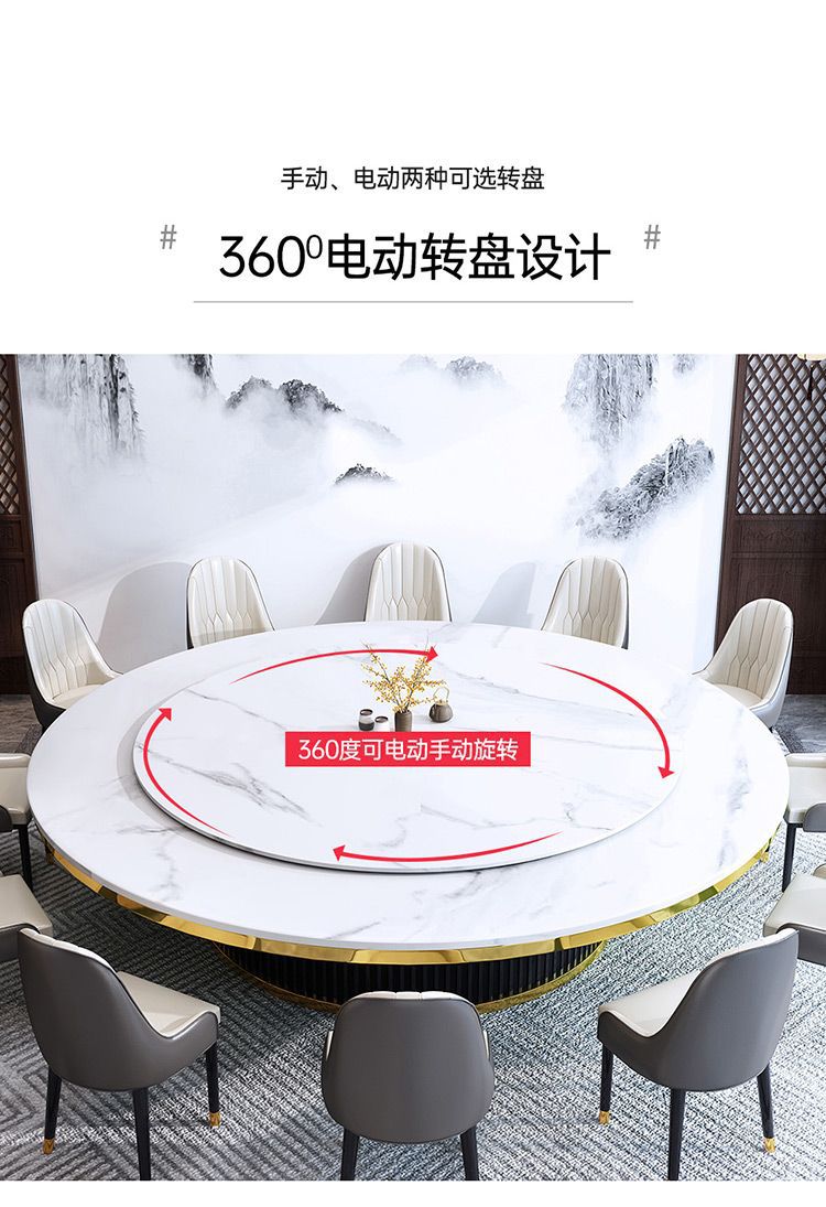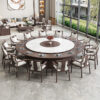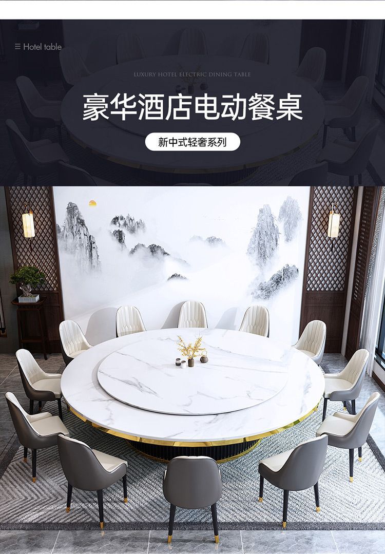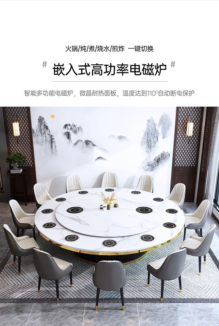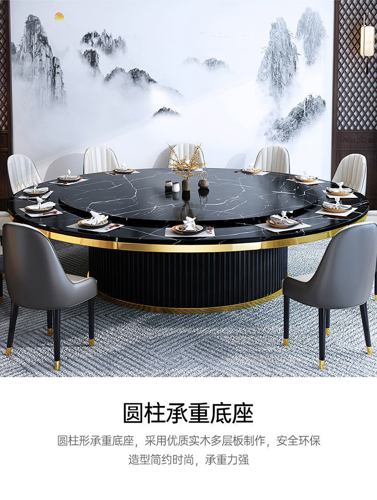 Bàn ăn xoay tự động khách sạn bàn tròn lớn Bàn lẩu Trung Quốc mới Bàn xoay tự động đá phiến kết hợp bàn ghế câu lạc bộ