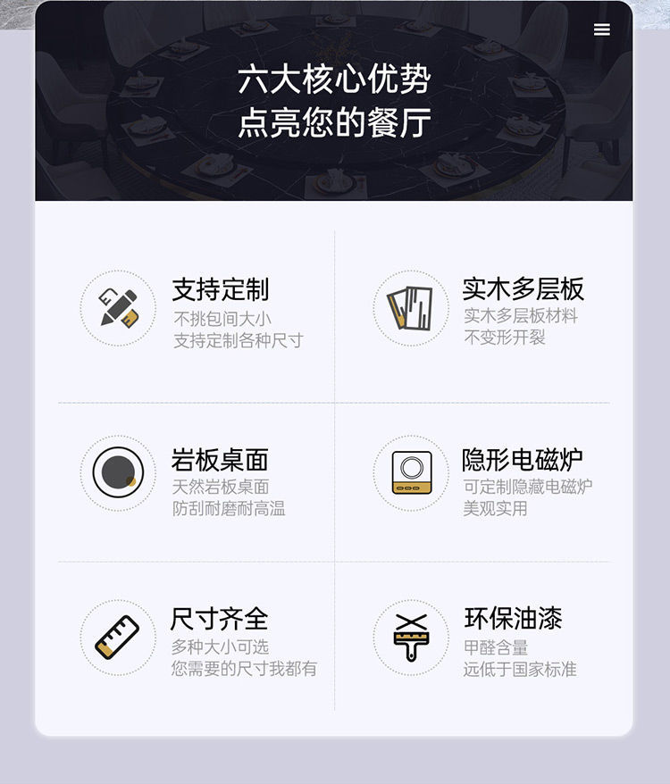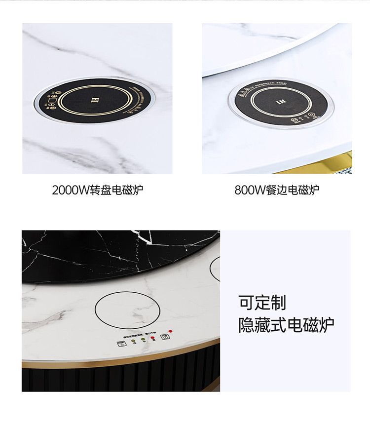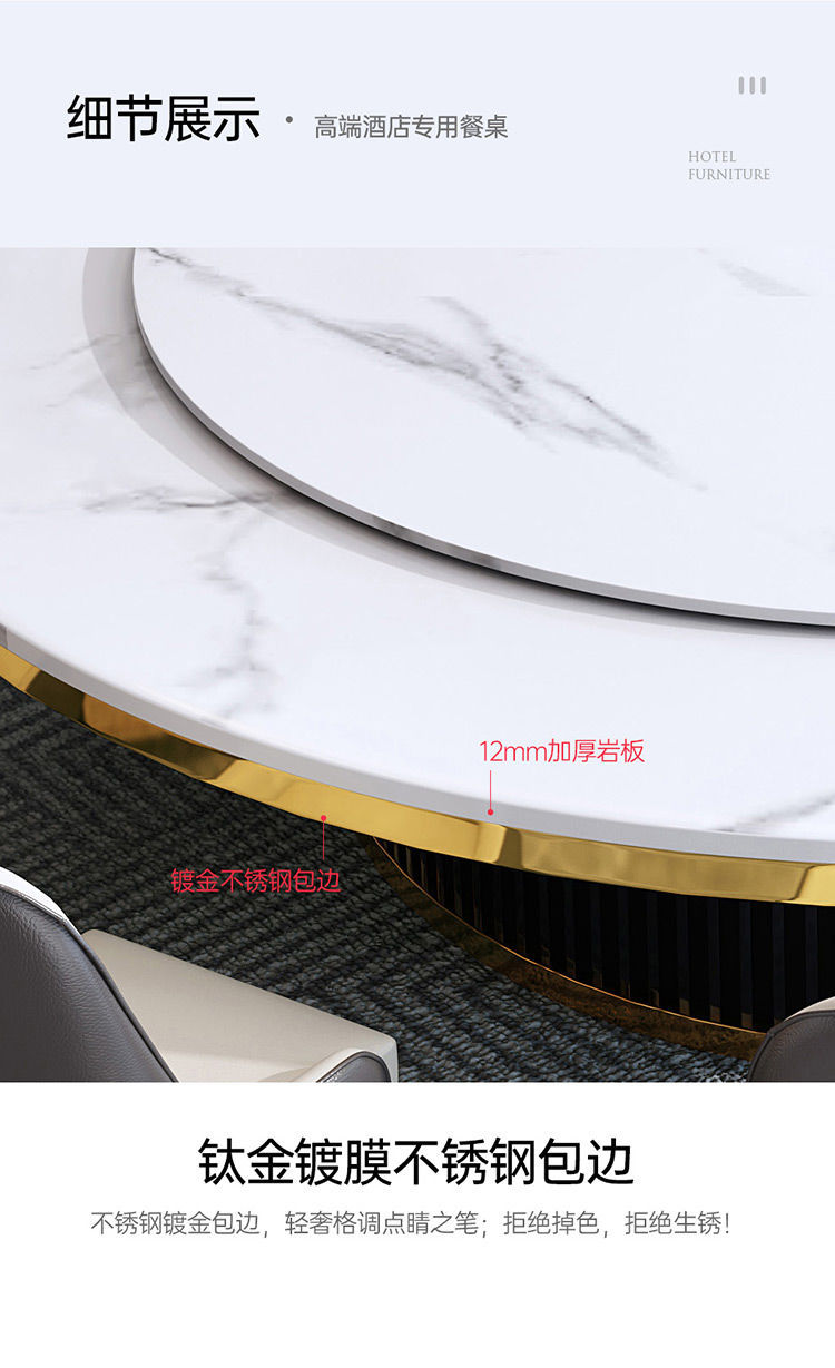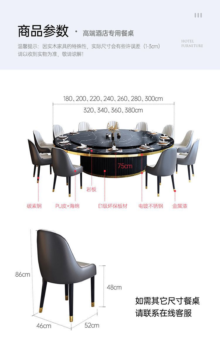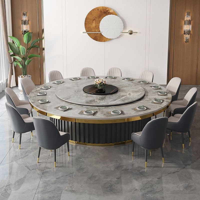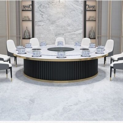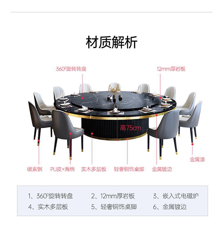 Bàn ăn xoay tự động khách sạn bàn tròn lớn Bàn lẩu Trung Quốc mới Bàn xoay tự động đá phiến kết hợp bàn ghế câu lạc bộ