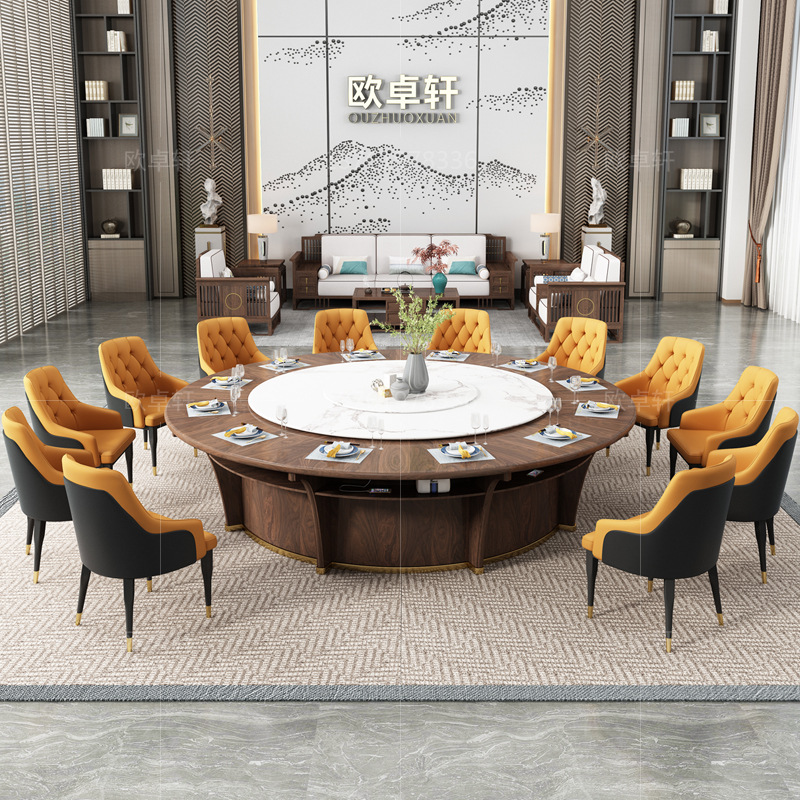 Bàn ăn xoay tự động khách sạn Bàn tròn lớn Bàn tròn Trung Quốc mới có bàn xoay nhà hàng 12 người Bàn tiệc 20 người
