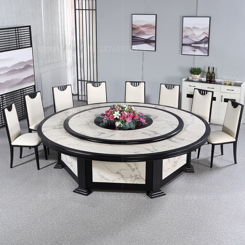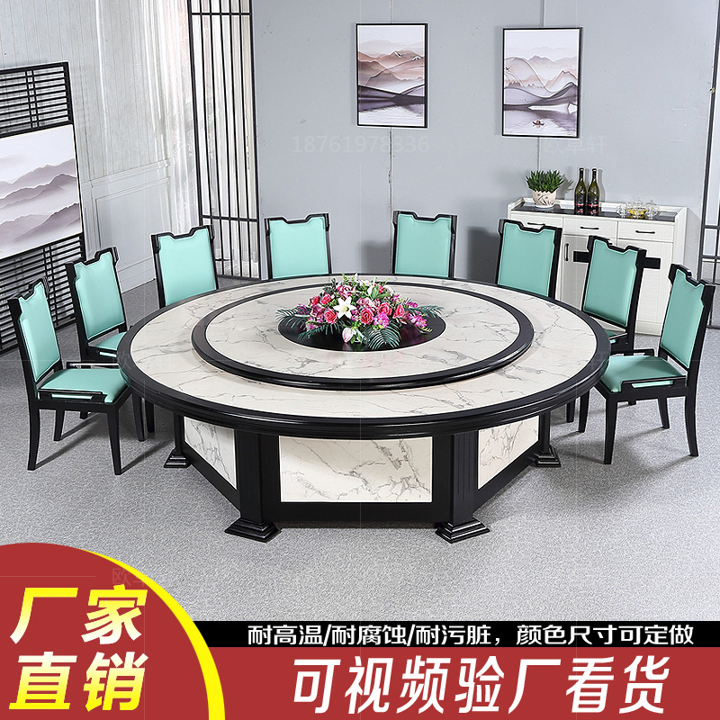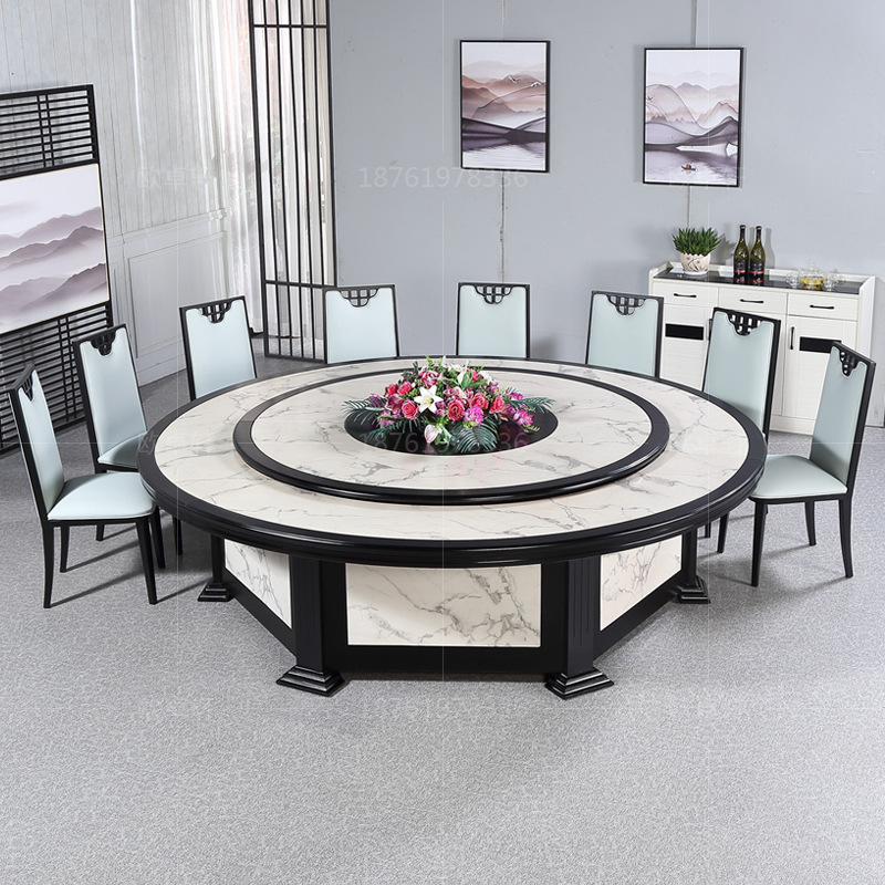 Bàn ăn xoay tự động khách sạn bàn tròn lớn hộp khách sạn 10 người 20 người phong cách Trung Quốc mới với bếp xoay cảm ứng bàn ghế Lẩu