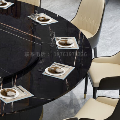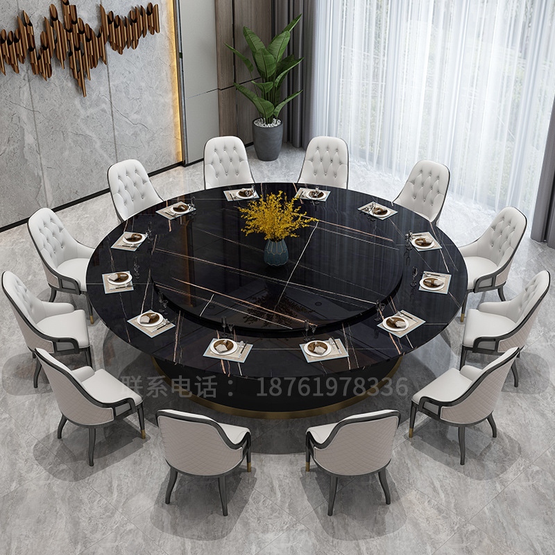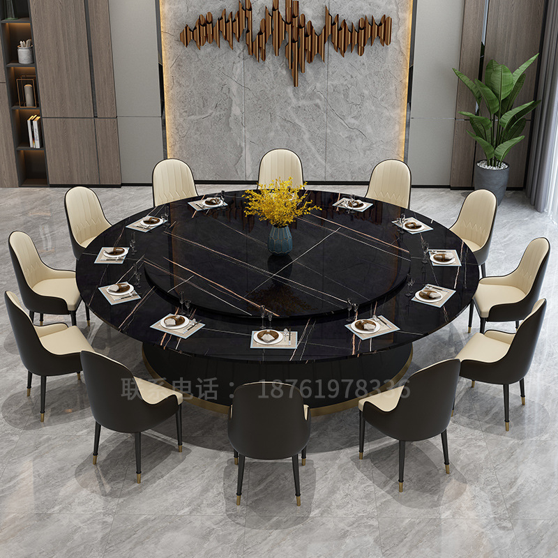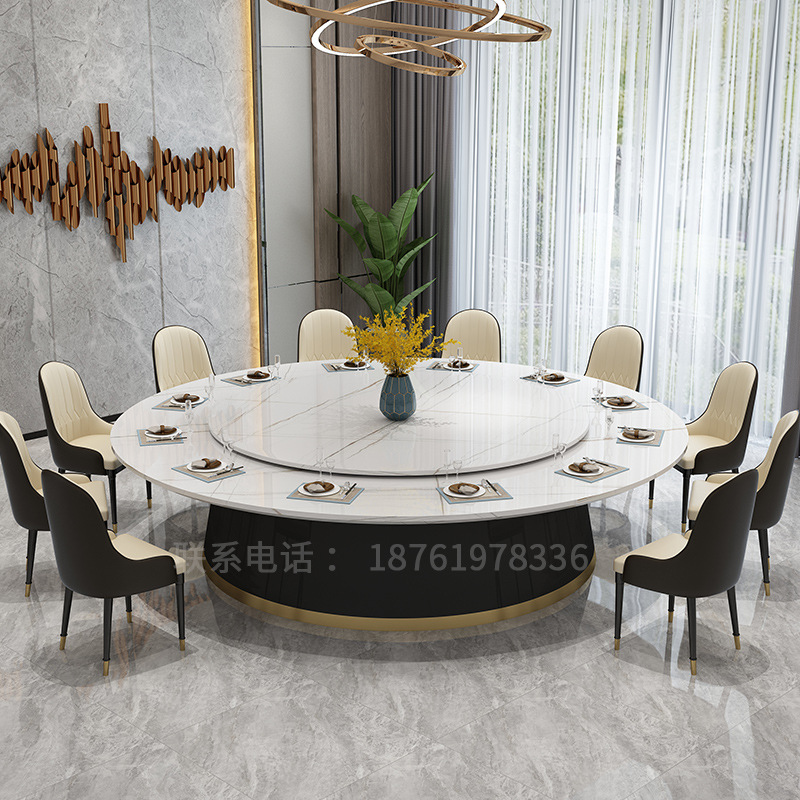 Bàn ăn xoay tự động khách sạn Bàn tròn lớn mới Câu lạc bộ bằng đá cẩm thạch phong cách Trung Quốc Hộp khách sạn 20 người bàn xoay Bàn Lẩu