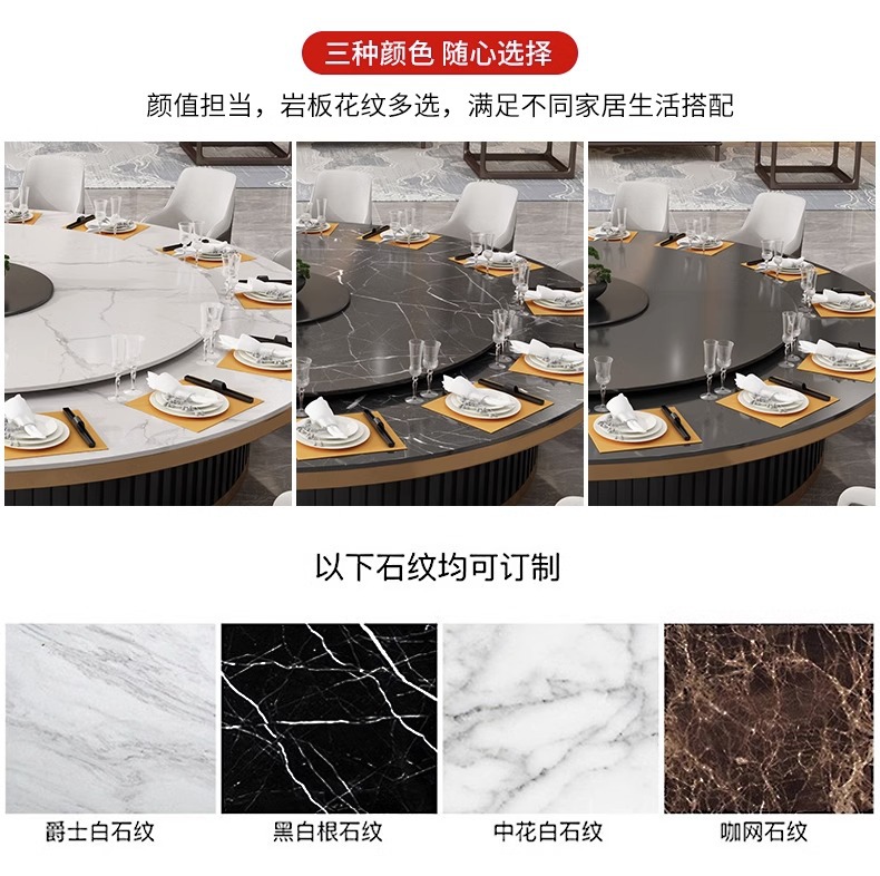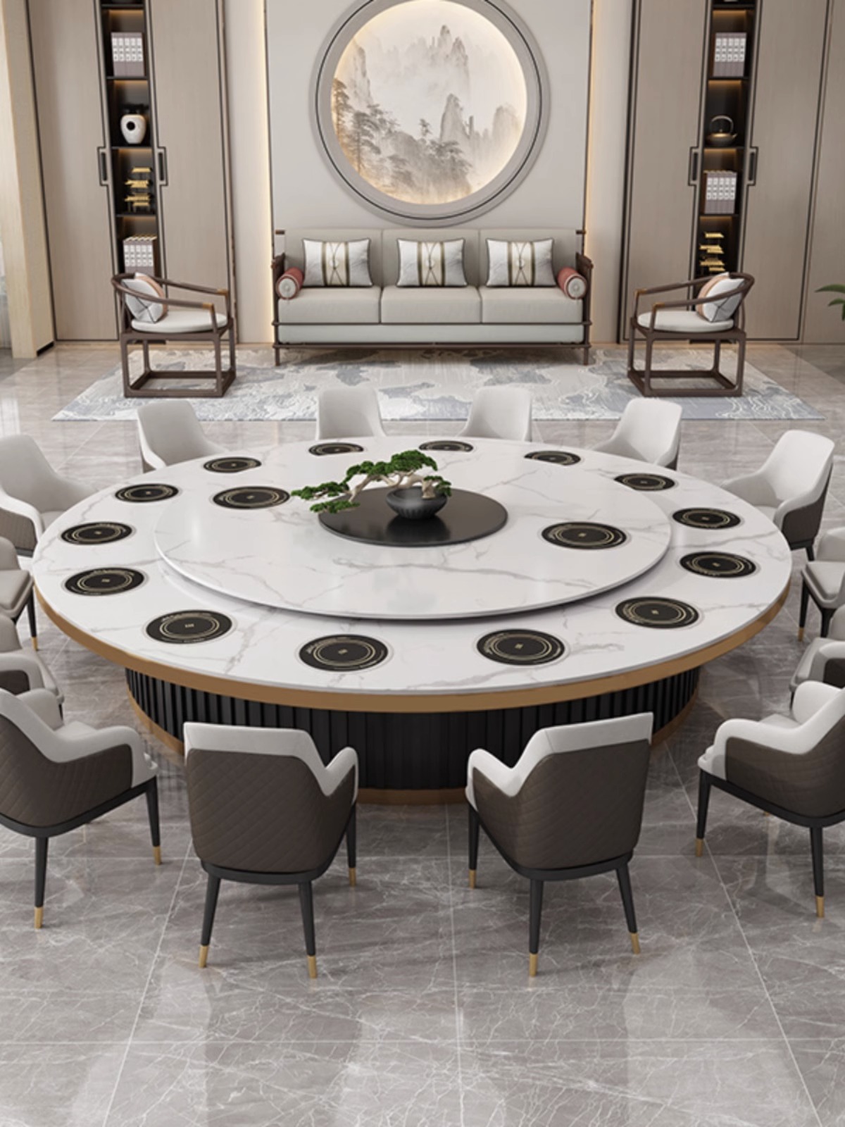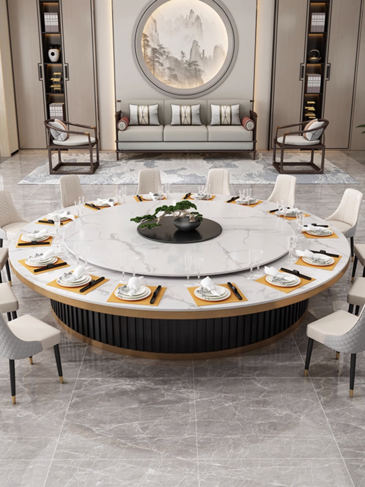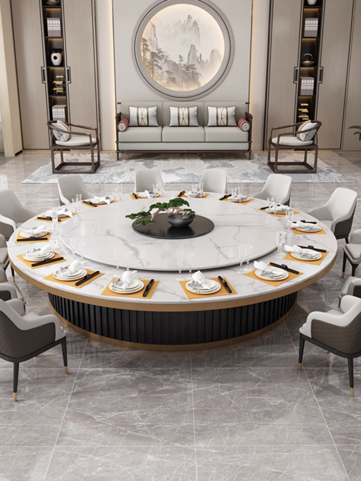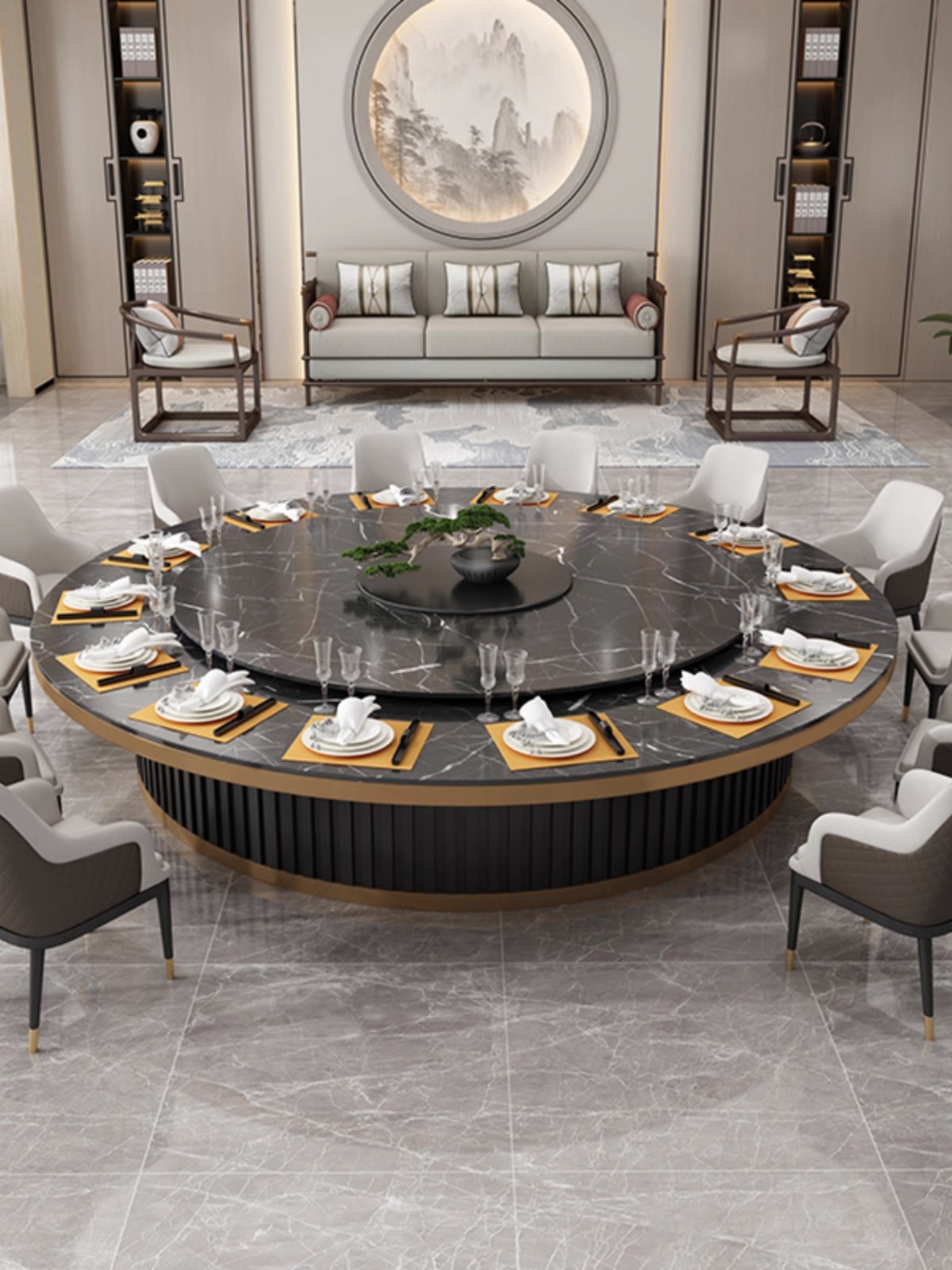 Bàn ăn xoay tự động khách sạn đá phiến bàn tròn lớn phong cách Trung Quốc mới 15 người 20 người khách sạn câu lạc bộ bàn tròn xoay tự động lớn có bàn xoay