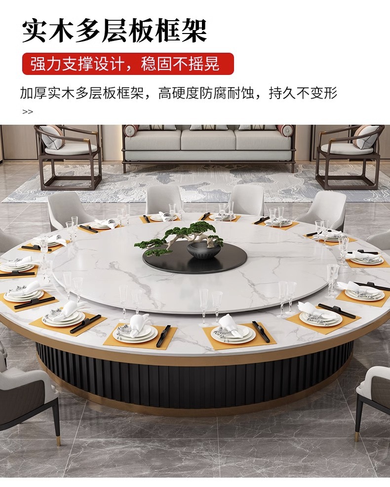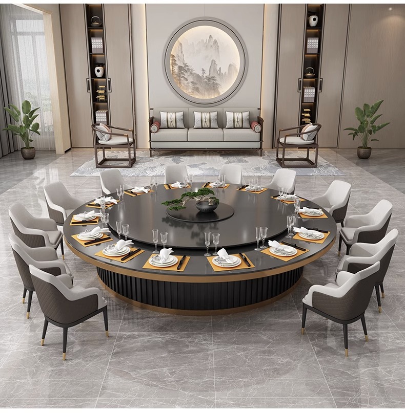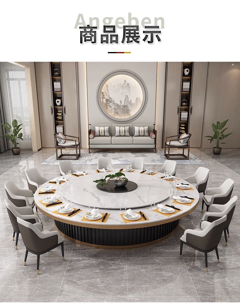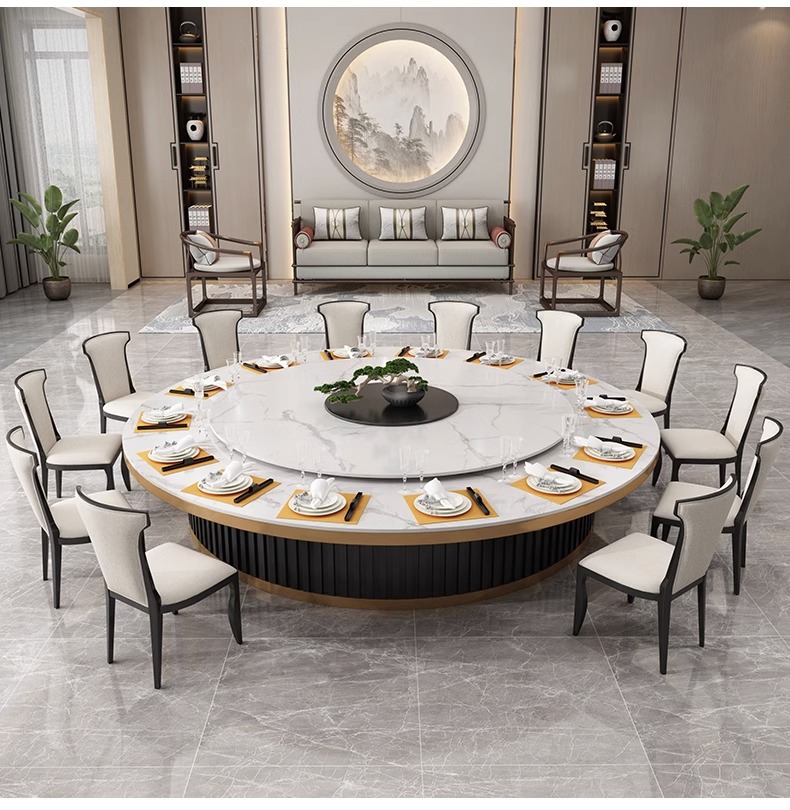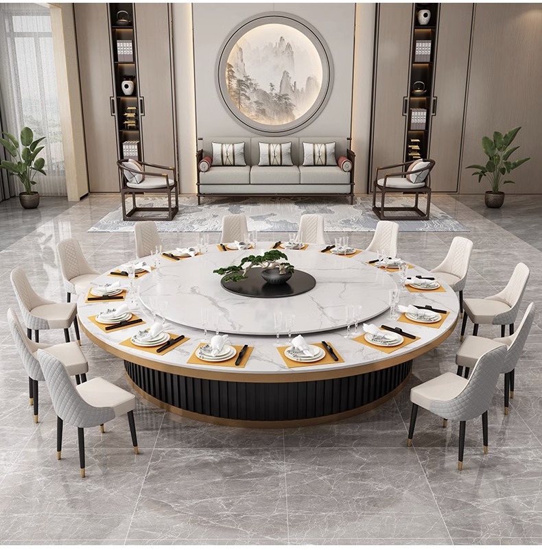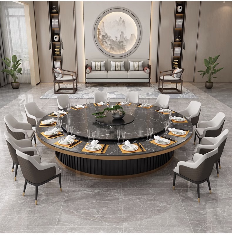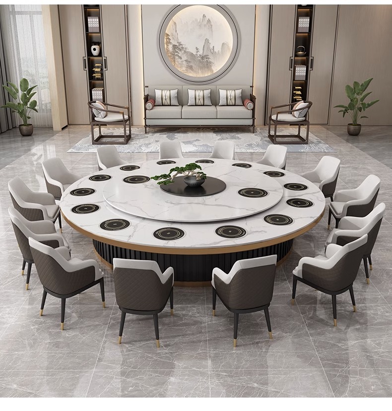 Bàn ăn xoay tự động khách sạn đá phiến bàn tròn lớn phong cách Trung Quốc mới 15 người 20 người khách sạn câu lạc bộ bàn tròn xoay tự động lớn có bàn xoay