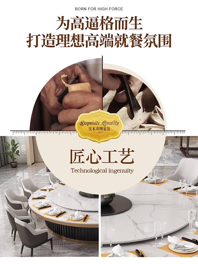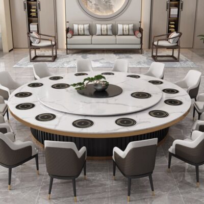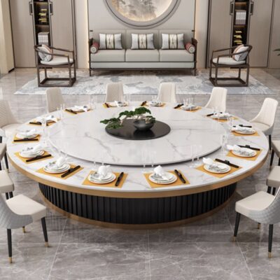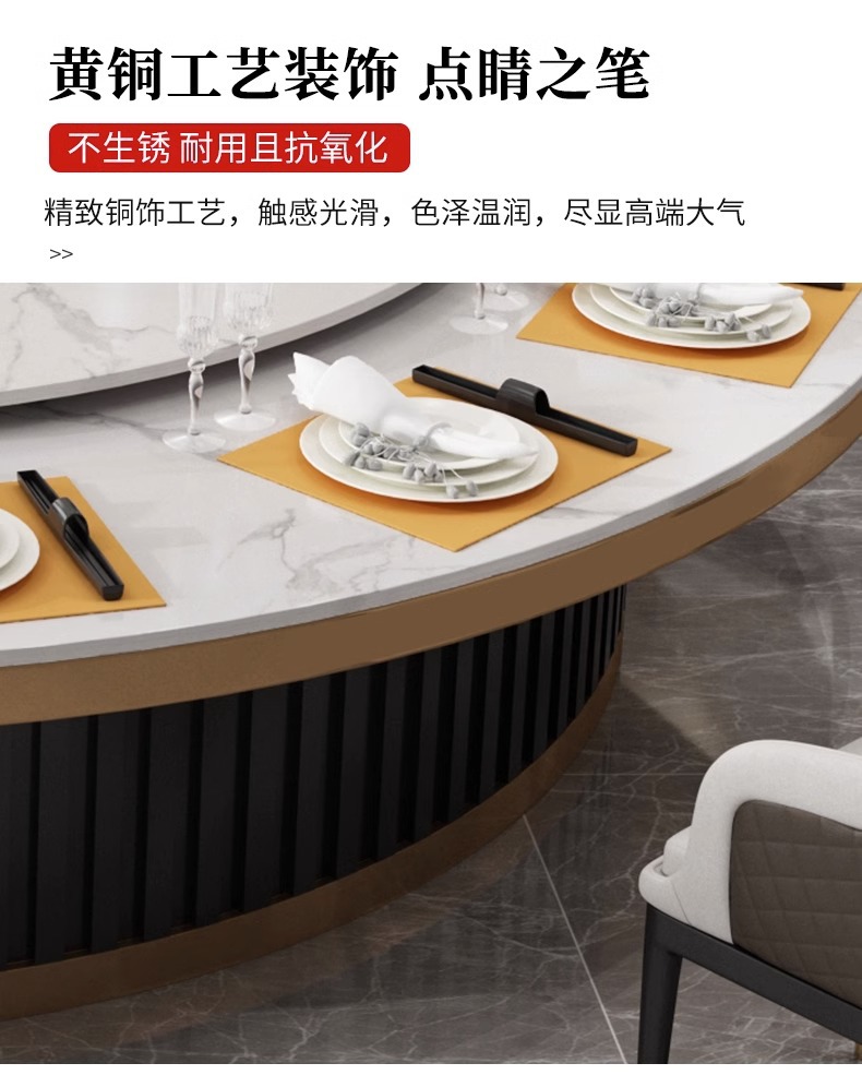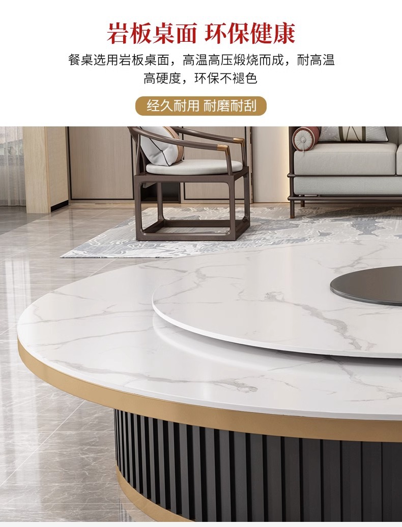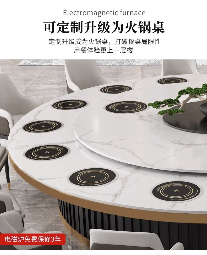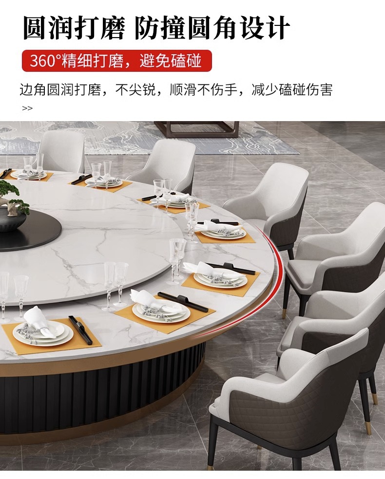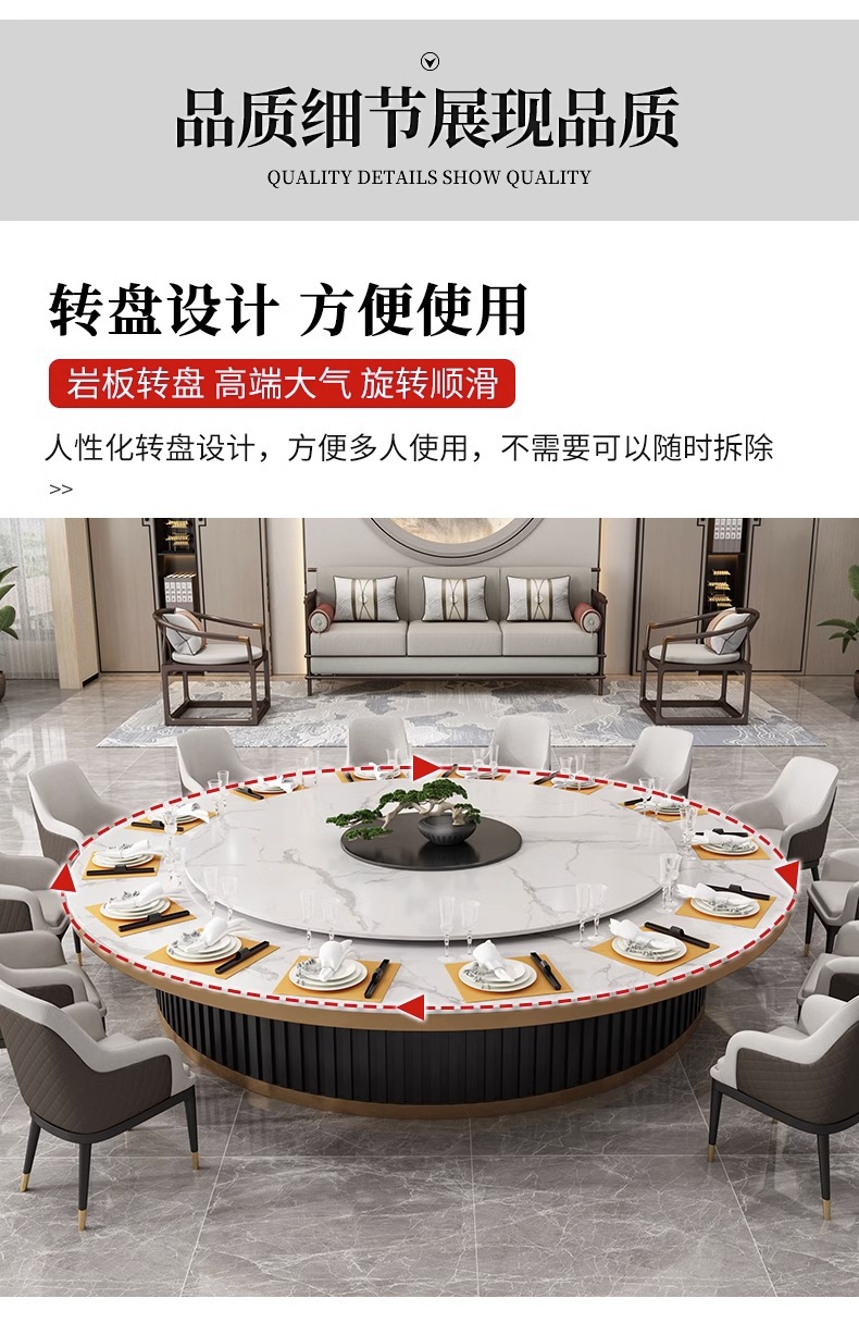 Bàn ăn xoay tự động khách sạn đá phiến bàn tròn lớn phong cách Trung Quốc mới 15 người 20 người khách sạn câu lạc bộ bàn tròn xoay tự động lớn có bàn xoay