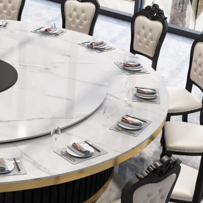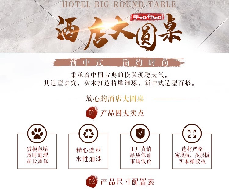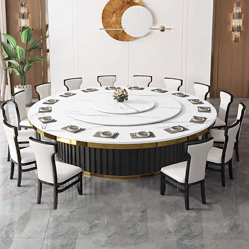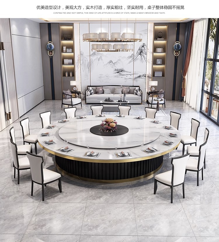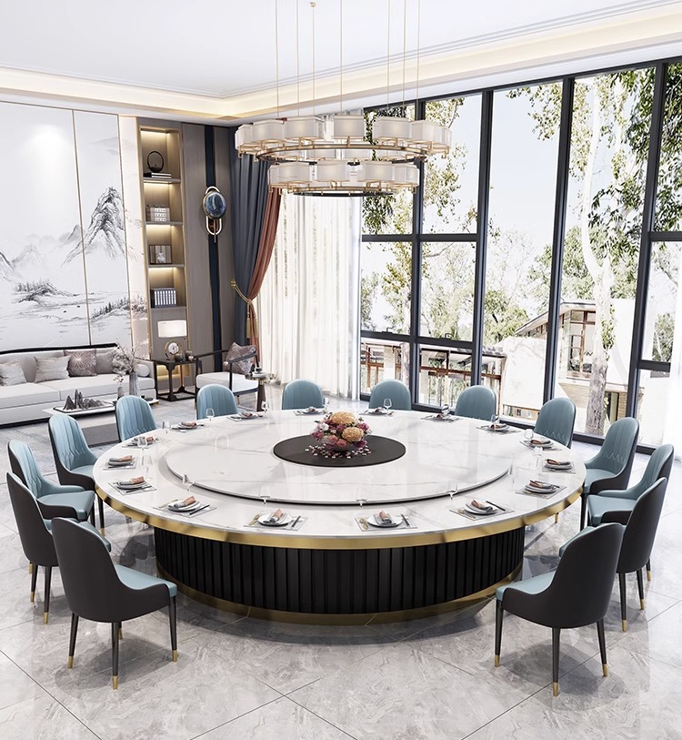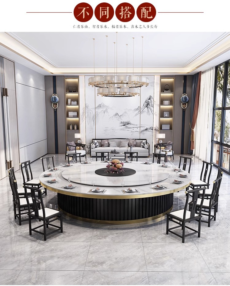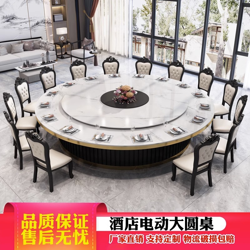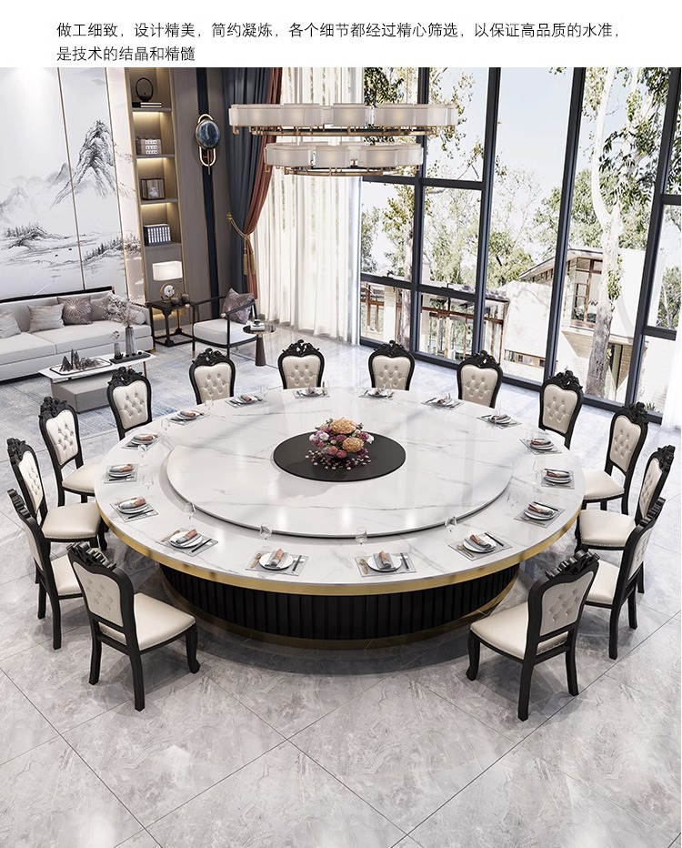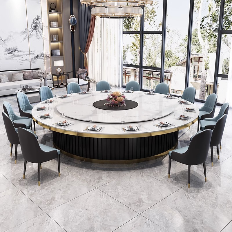 Bàn ăn xoay tự động khách sạn kiểu Trung Quốc mới bàn tròn lớn đĩa đá bàn xoay 15 người 20 người nhà hàng câu lạc bộ bàn lẩu