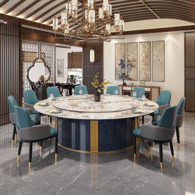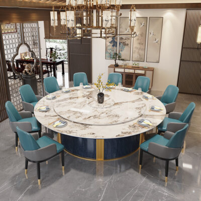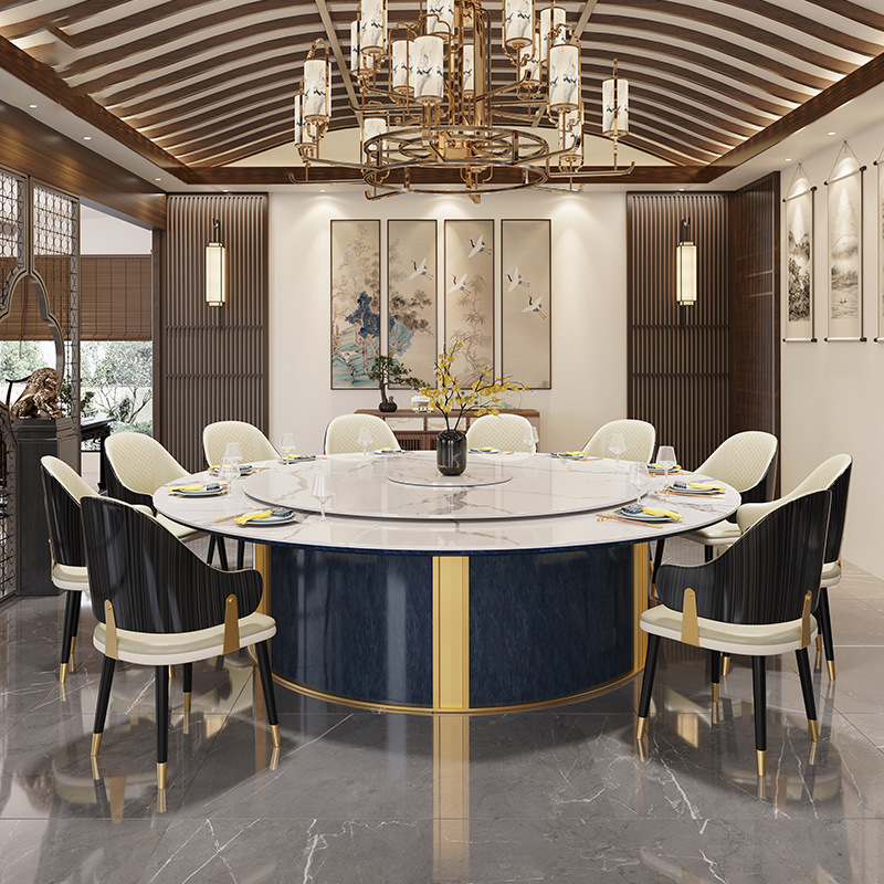 Bàn ăn xoay tự động kiểu Trung Quốc mới bàn tròn đá phiến 15 người / 20 người có bàn ăn bàn xoay khách sạn tư nhân bàn tròn lớn