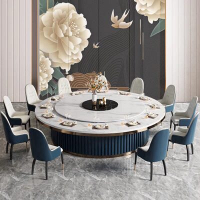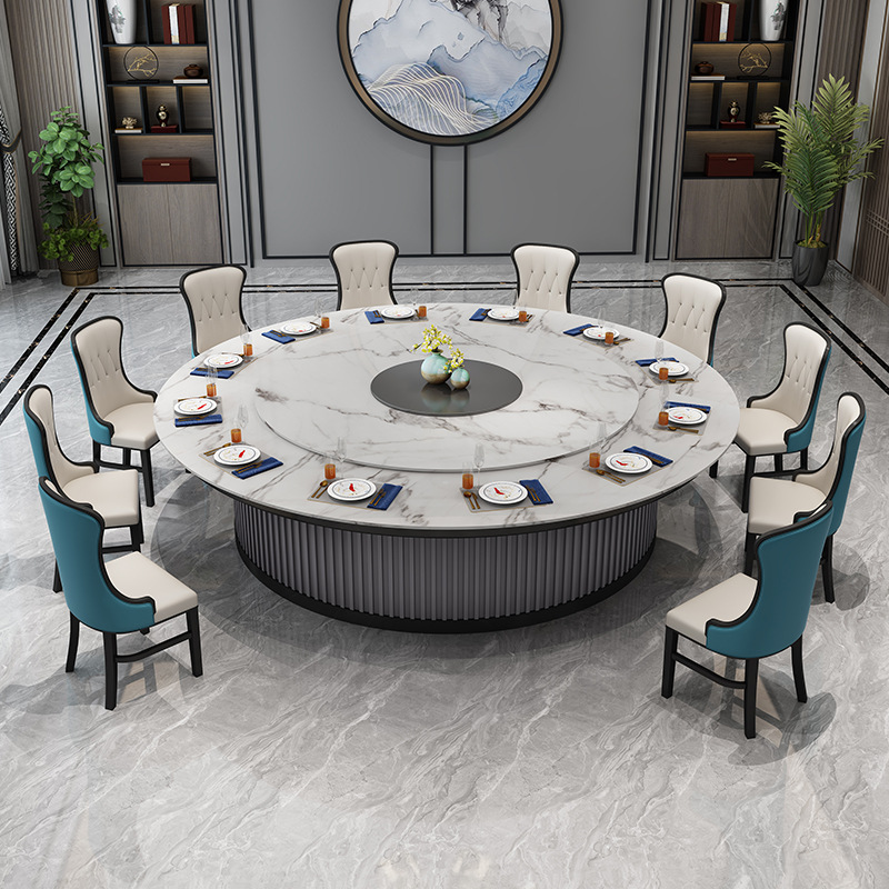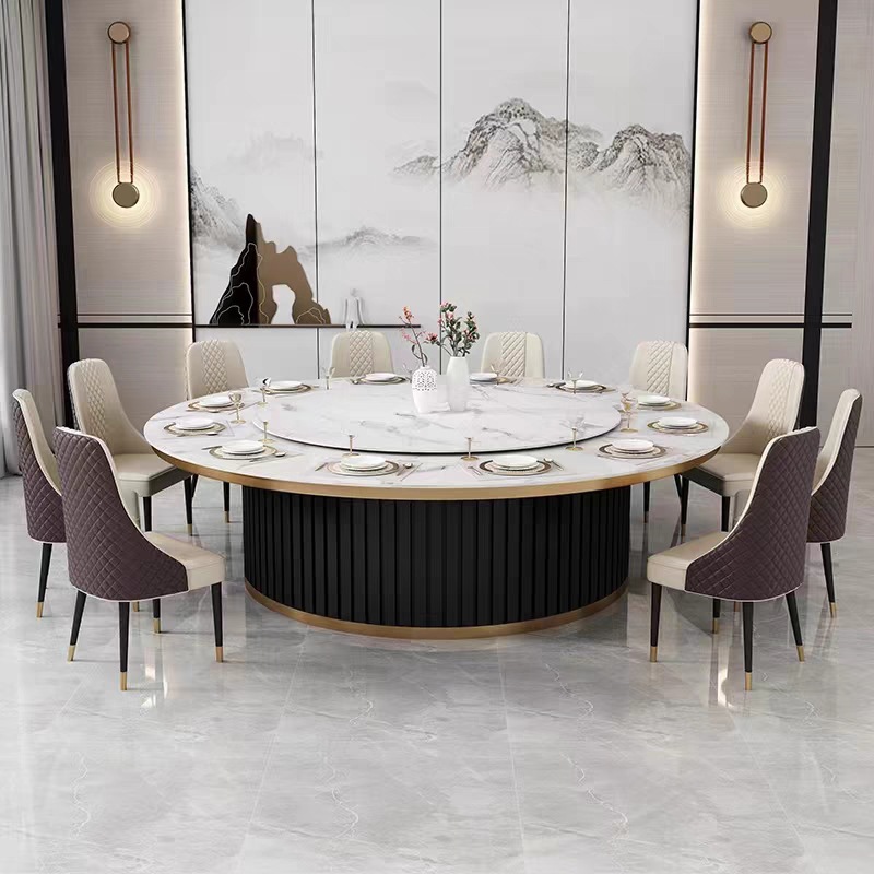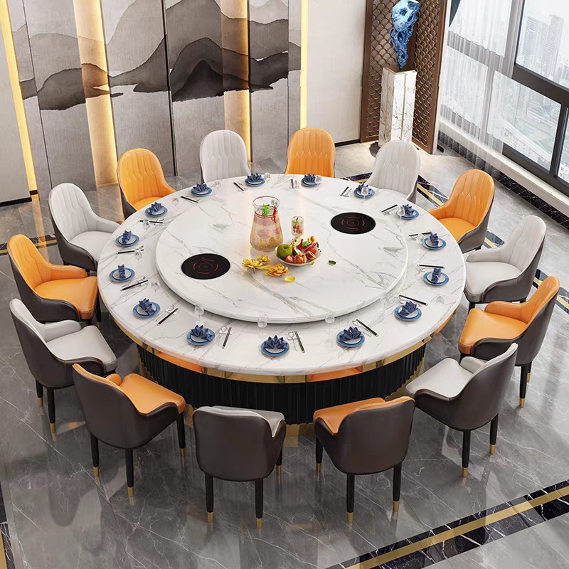 Bàn ăn xoay tự động tròn bàn lớn khách sạn 10 người 15 khách sạn câu lạc bộ ánh sáng sang trọng bếp từ cảm ứng bàn Lẩu đá tấm bàn tròn lớn