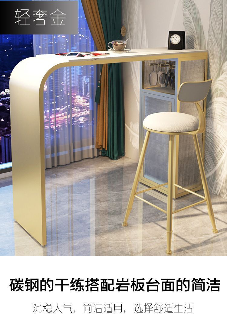 Bàn bar đá phiến hiện đại nhà ban công phòng khách đơn giản tích hợp bàn cao bàn sofa bên quầy bar nhỏ