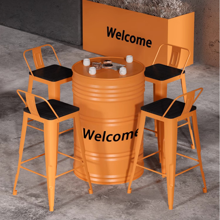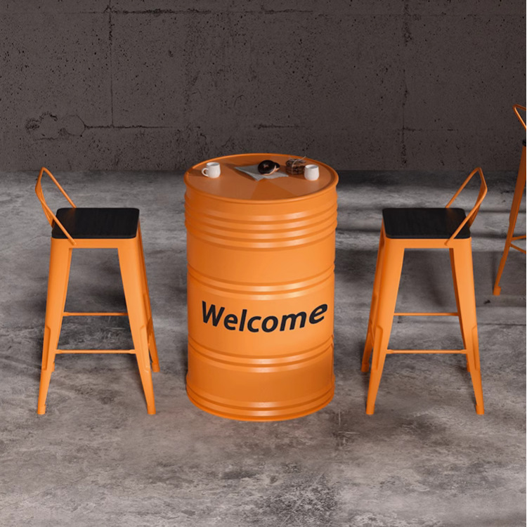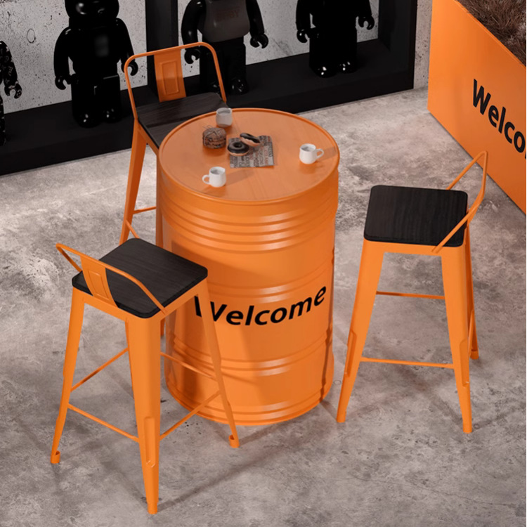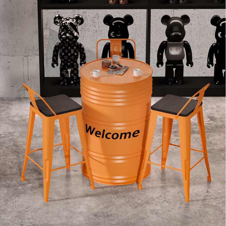 Bàn bar sắt rèn bàn tròn lưới ins đỏ phong cách công nghiệp quầy bar trong suốt quán cà phê quán trà sữa kết hợp bàn ghế cao