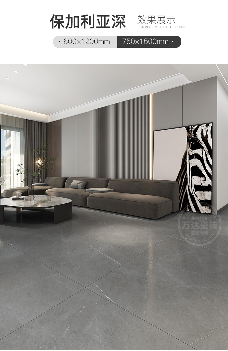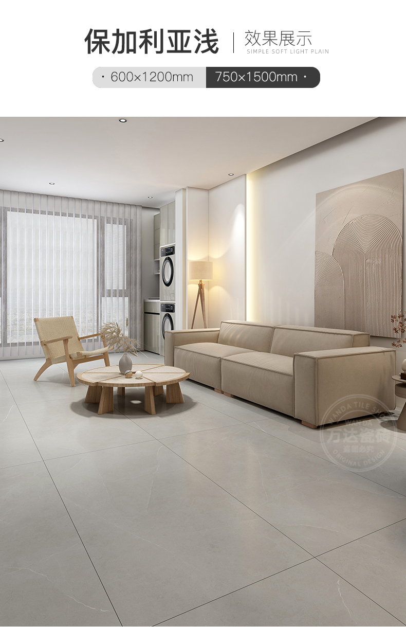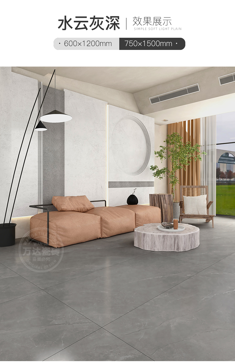 Bán buôn ánh sáng dịu da men gạch vi xi măng 750×1500 lát sàn phòng khách 600×1200 giả màu trơn Quảng Đông
